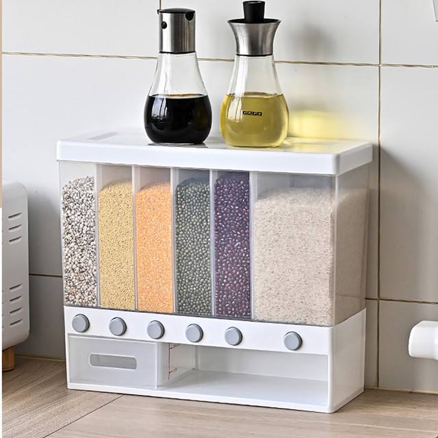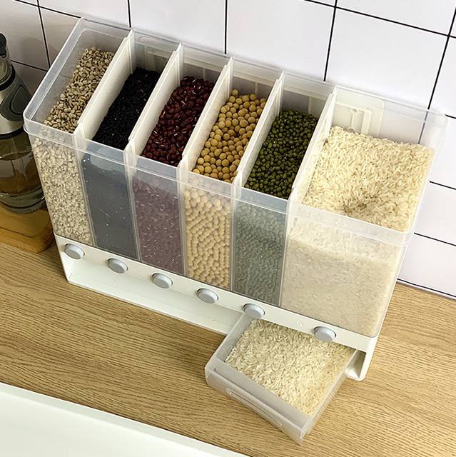 متعددة الوظائف المطبخ الحائط مقسمة الأرز وموزع حبوب الحبوب دلو ختم موزع الأرز السائبة تخزين الحاويات.