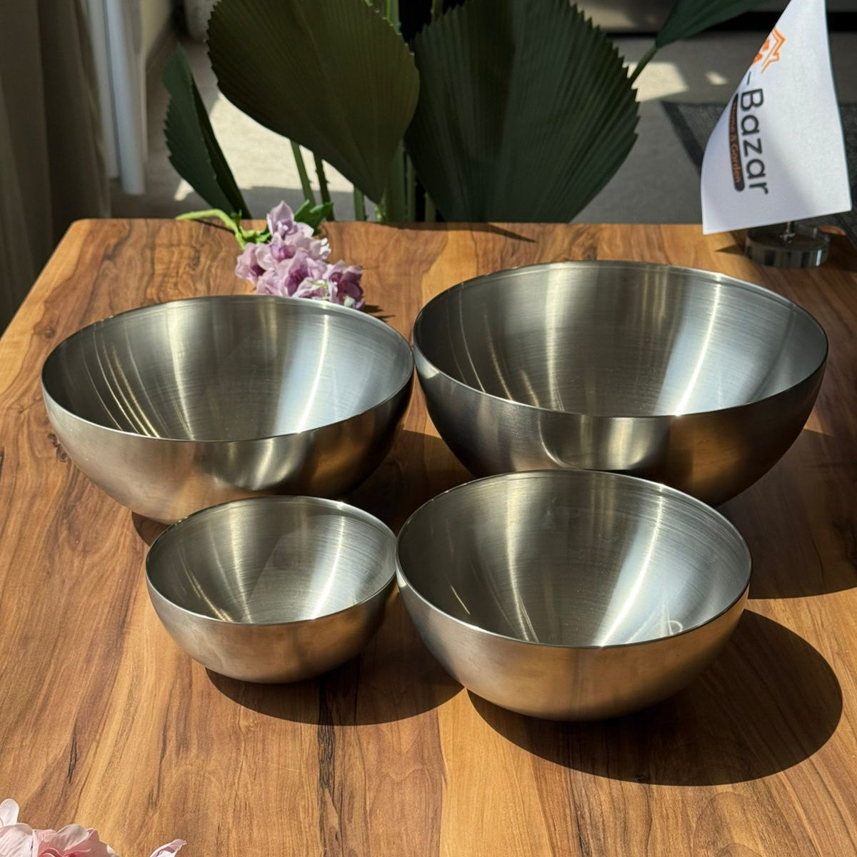 أوعية خلط وتقديم فاخرة متعددة الاستخدامات من الفولاذ المقاوم للصدأ باللون الفضي |