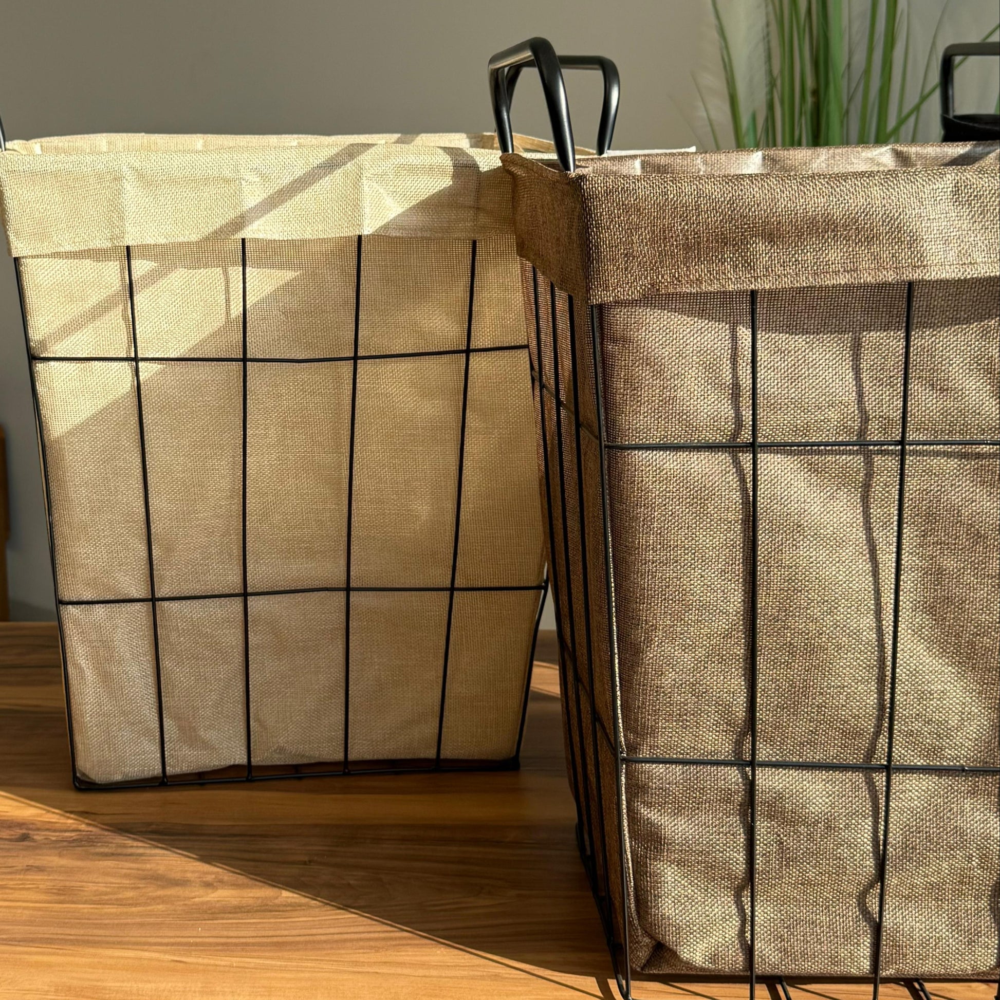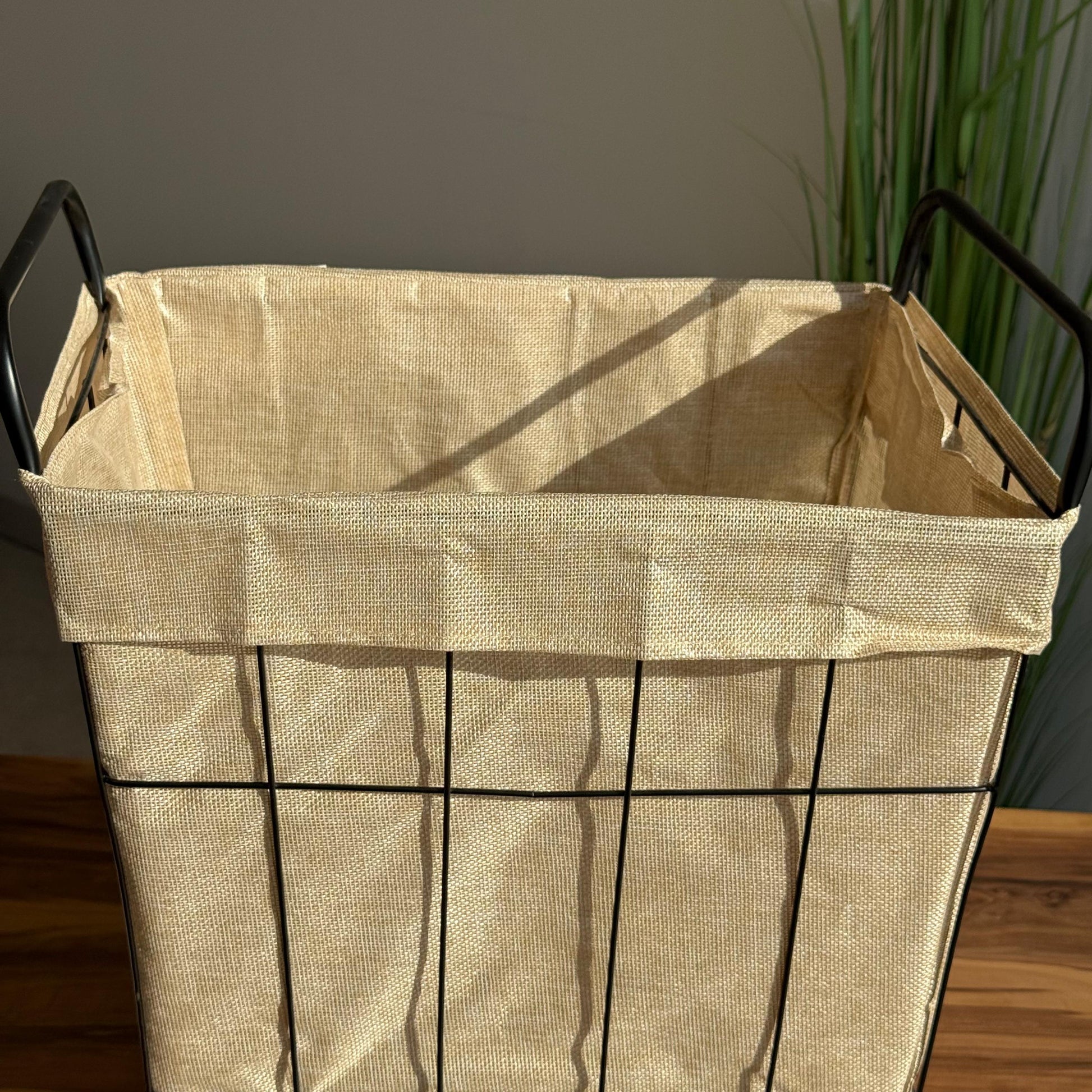 سلة تخزين بإطار معدني متين مع بطانة قماشية قابلة للإزالة