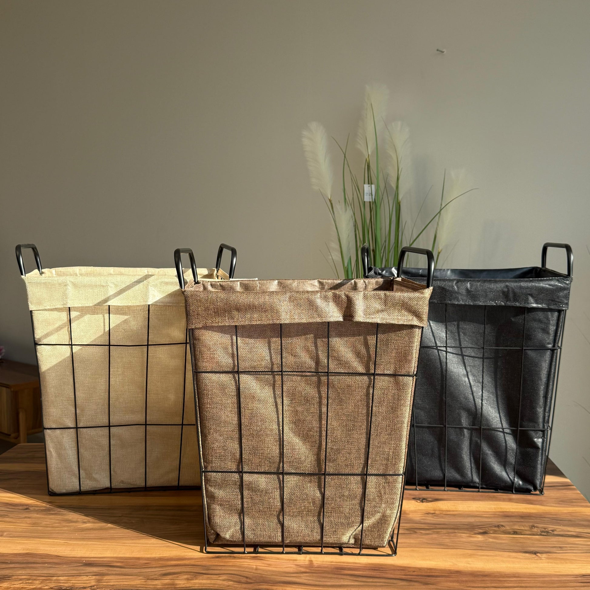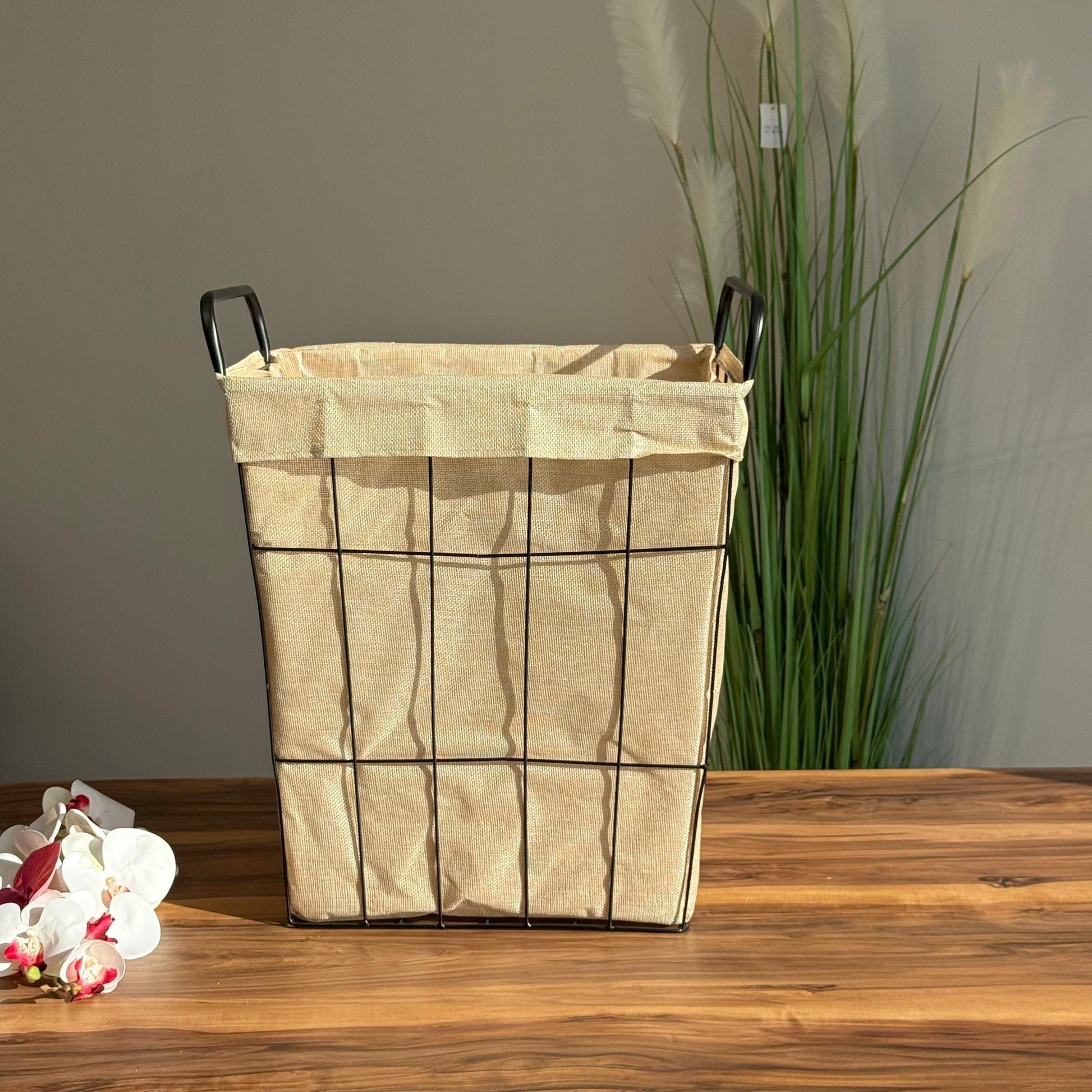 سلة تخزين معدنية متعددة الاستخدامات مع بطانة داخلية من القماش