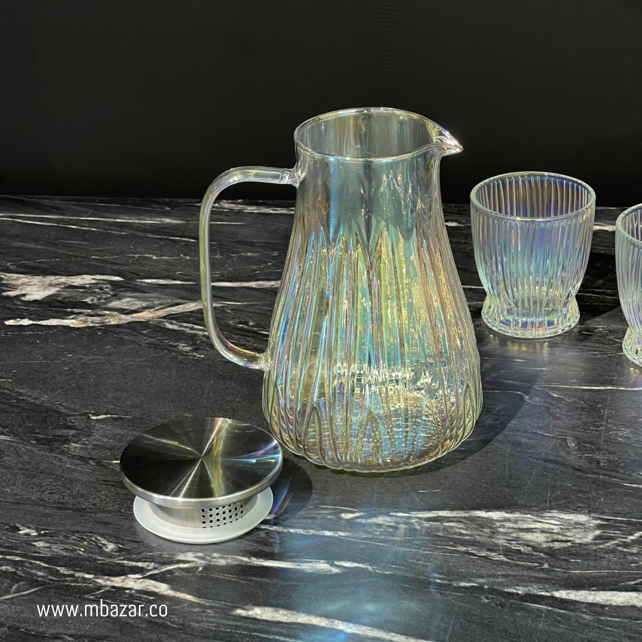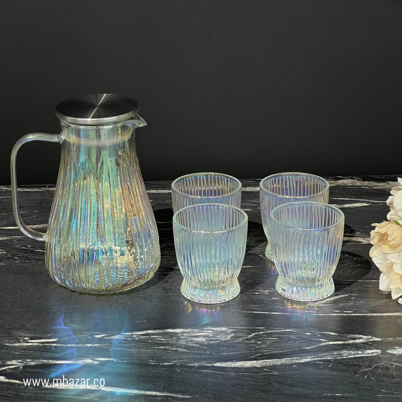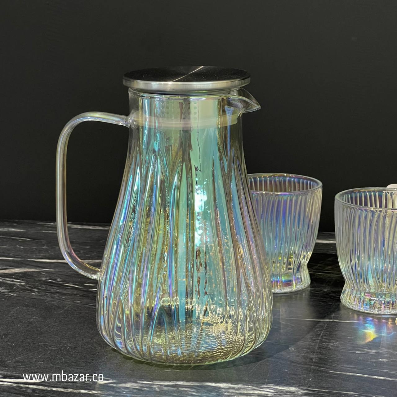 مجموعة إبريق الماء/العصير الزجاجي ذو اللون السحري