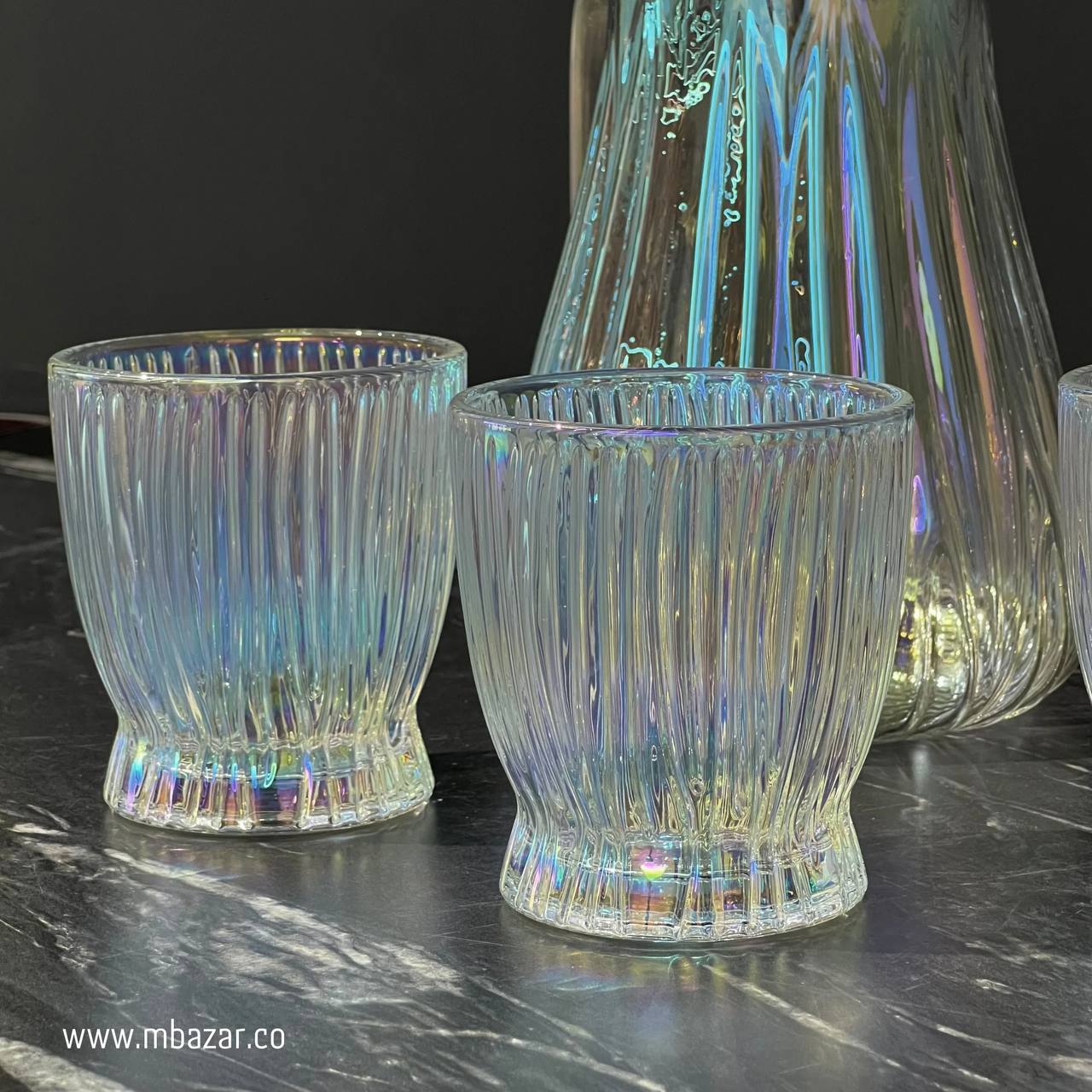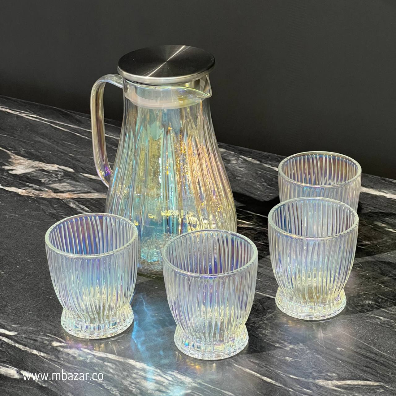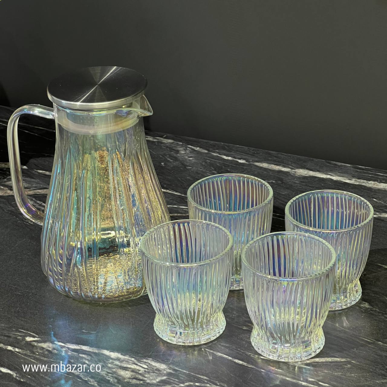 مجموعة إبريق الماء/العصير الزجاجي ذو اللون السحري