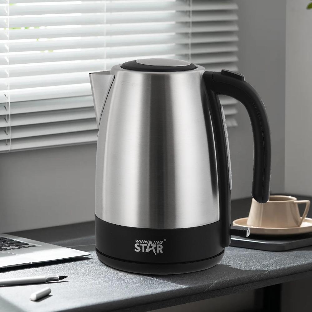 التصميم الجميل للتحكم في درجة الحرارة، غلاية كهربائية مزدوجة الطبقات من الستيل المقاوم للصدأ 304 بسعة 1.8 لتر، تدور بزاوية 360 درجة، وهي اختيار مثالي لأجهزة المطبخ الخاصة بك.