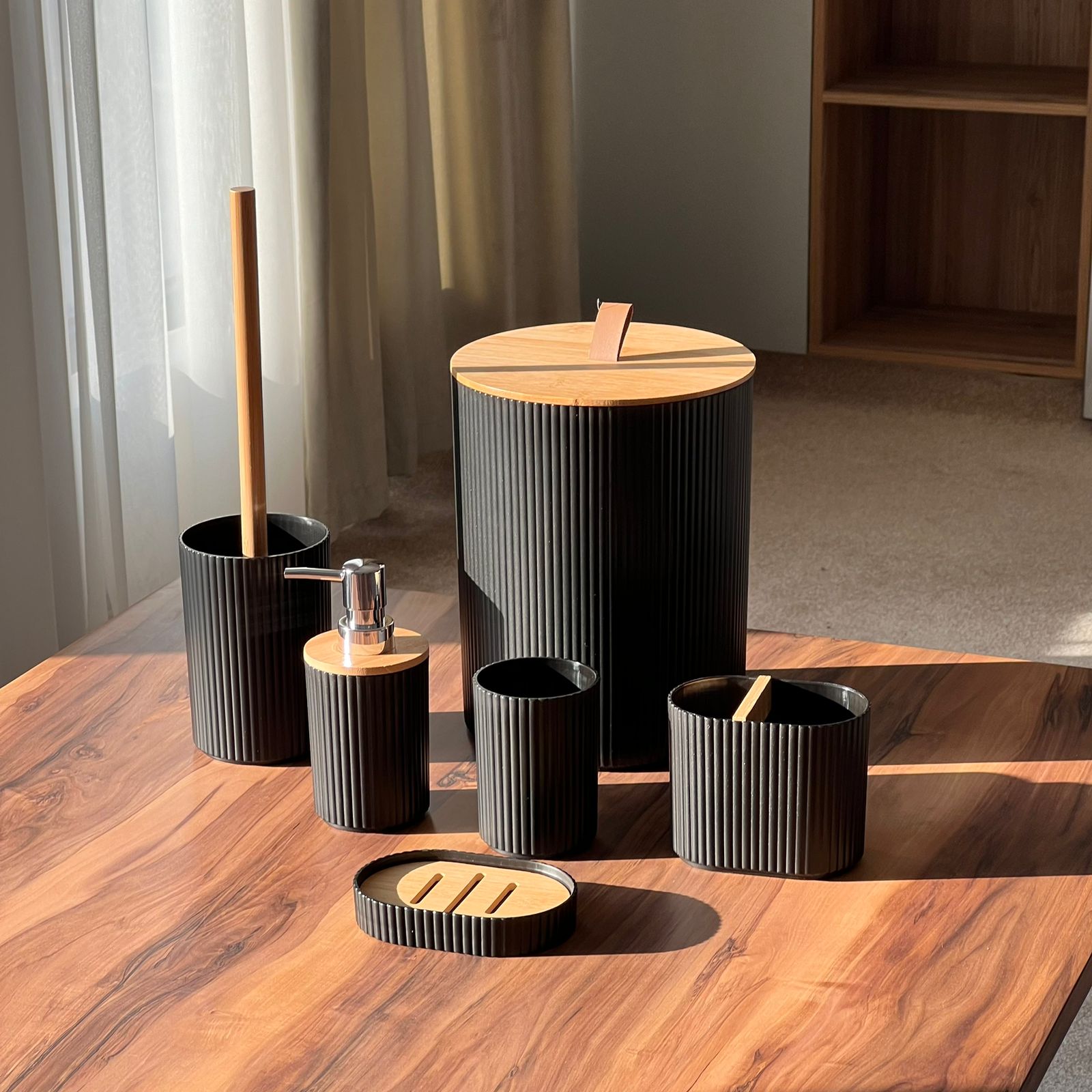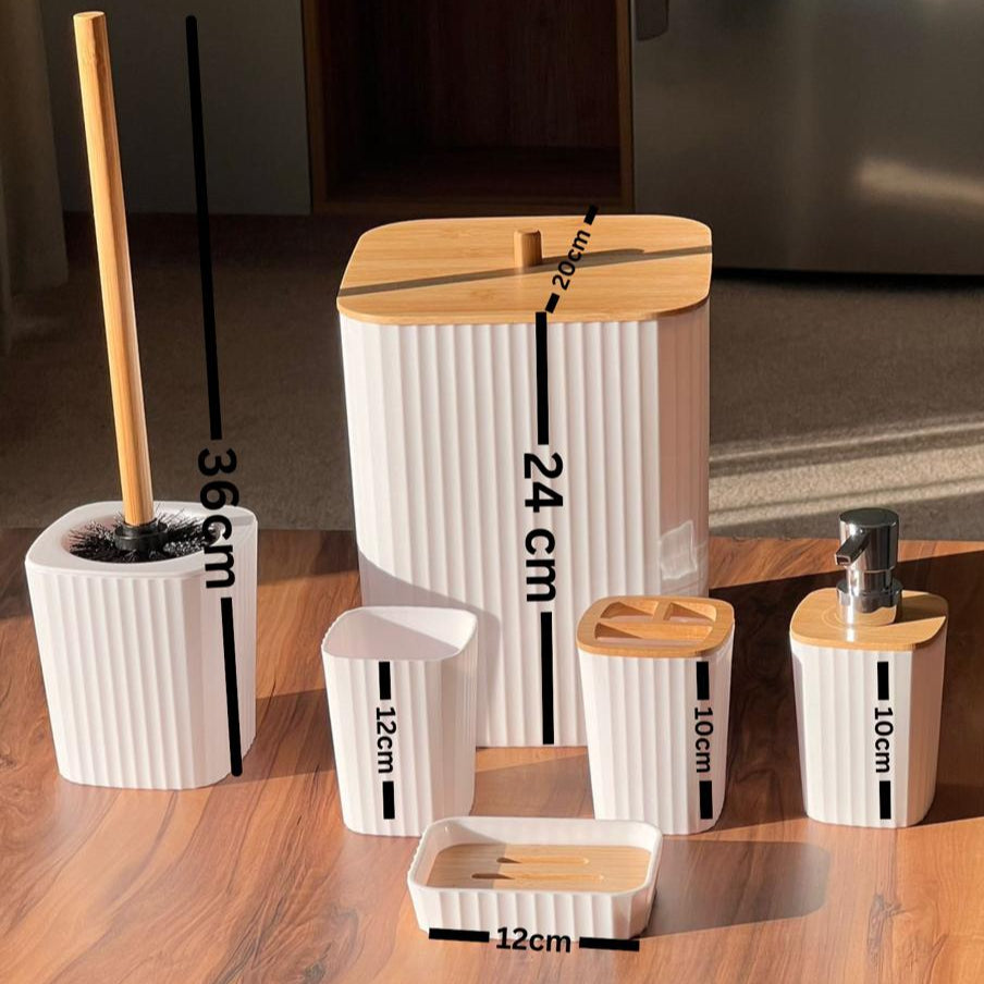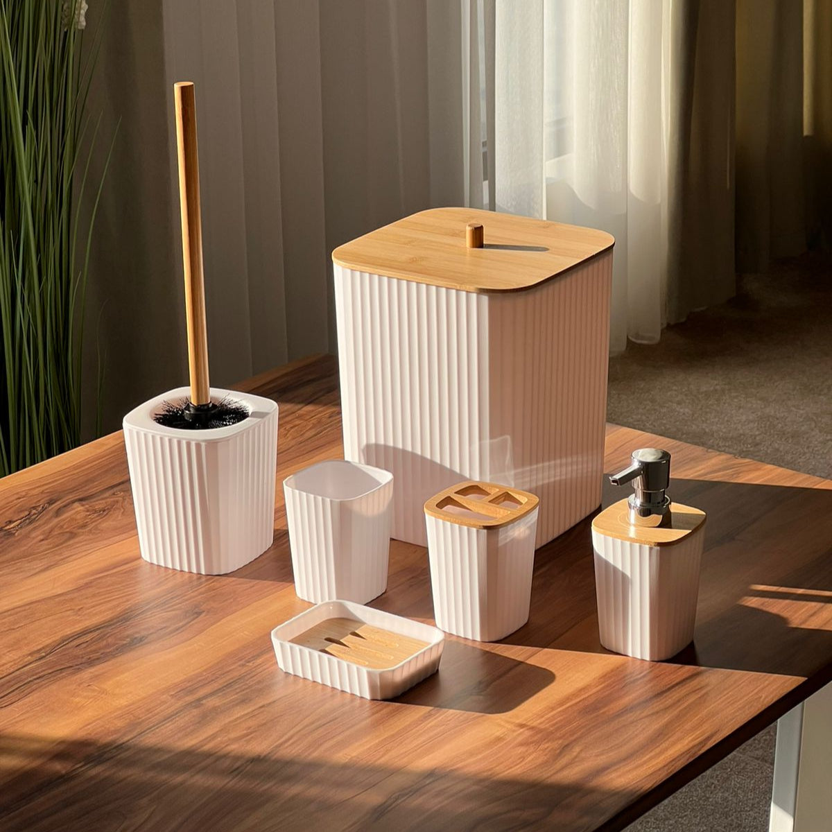 يجمع الطقم بين العملية والتصميم الأنيق للحفاظ على حمامك نظيفًا ومنظمًا.