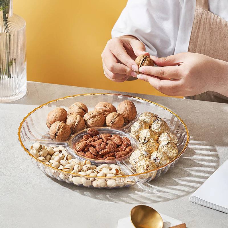 طبق تقديم مكون من 4 أقسام مناسب للمقبلات والخضروات والحلوى والمكسرات وجميع مفضلاتك.