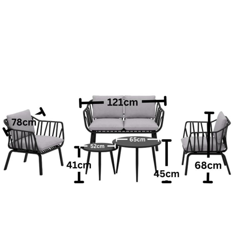-تتألف من أربع قطع بما في ذلك ، كرسيان ، واحد Loveseat وطاولتان قهوة مستديرة (كبيرة وصغيرة)