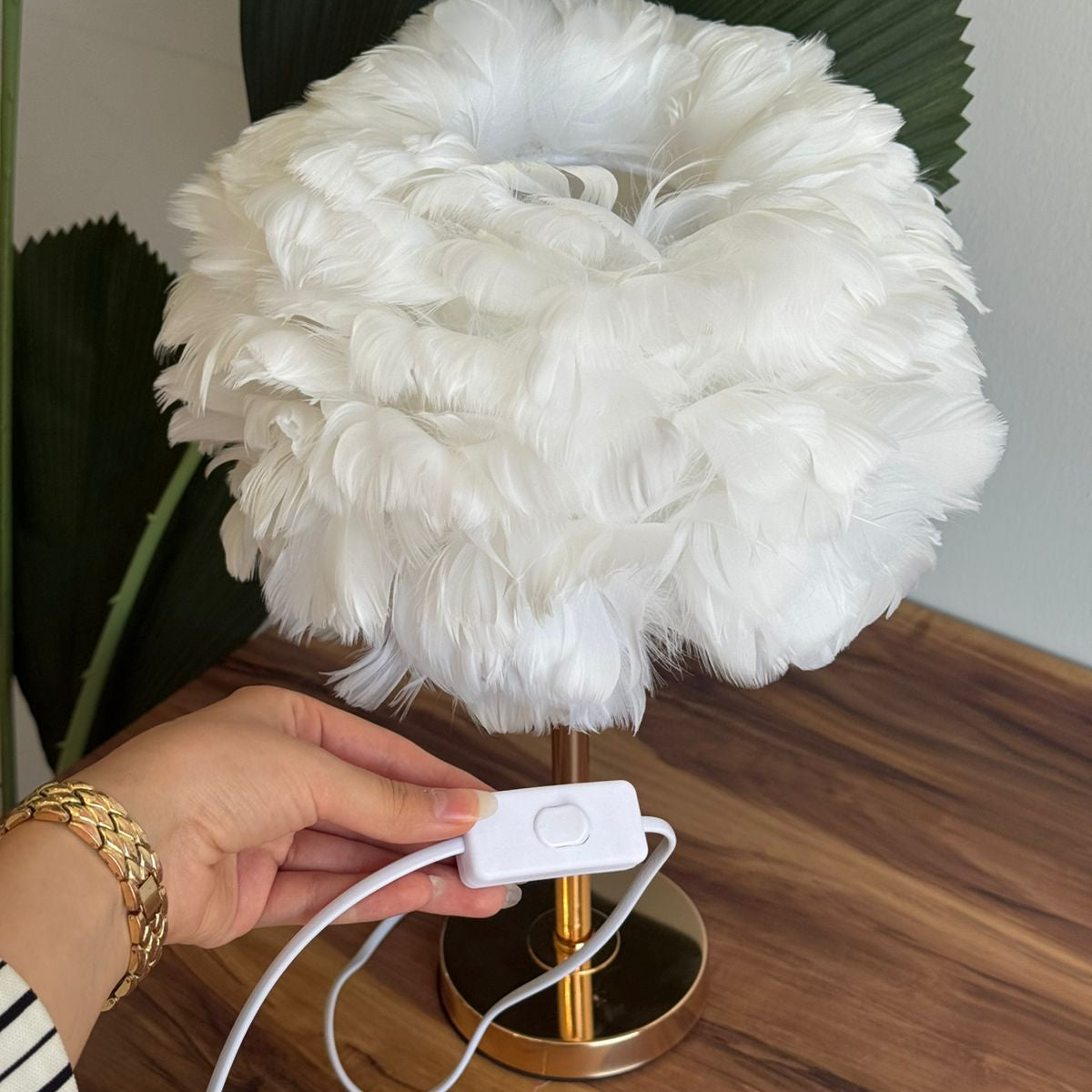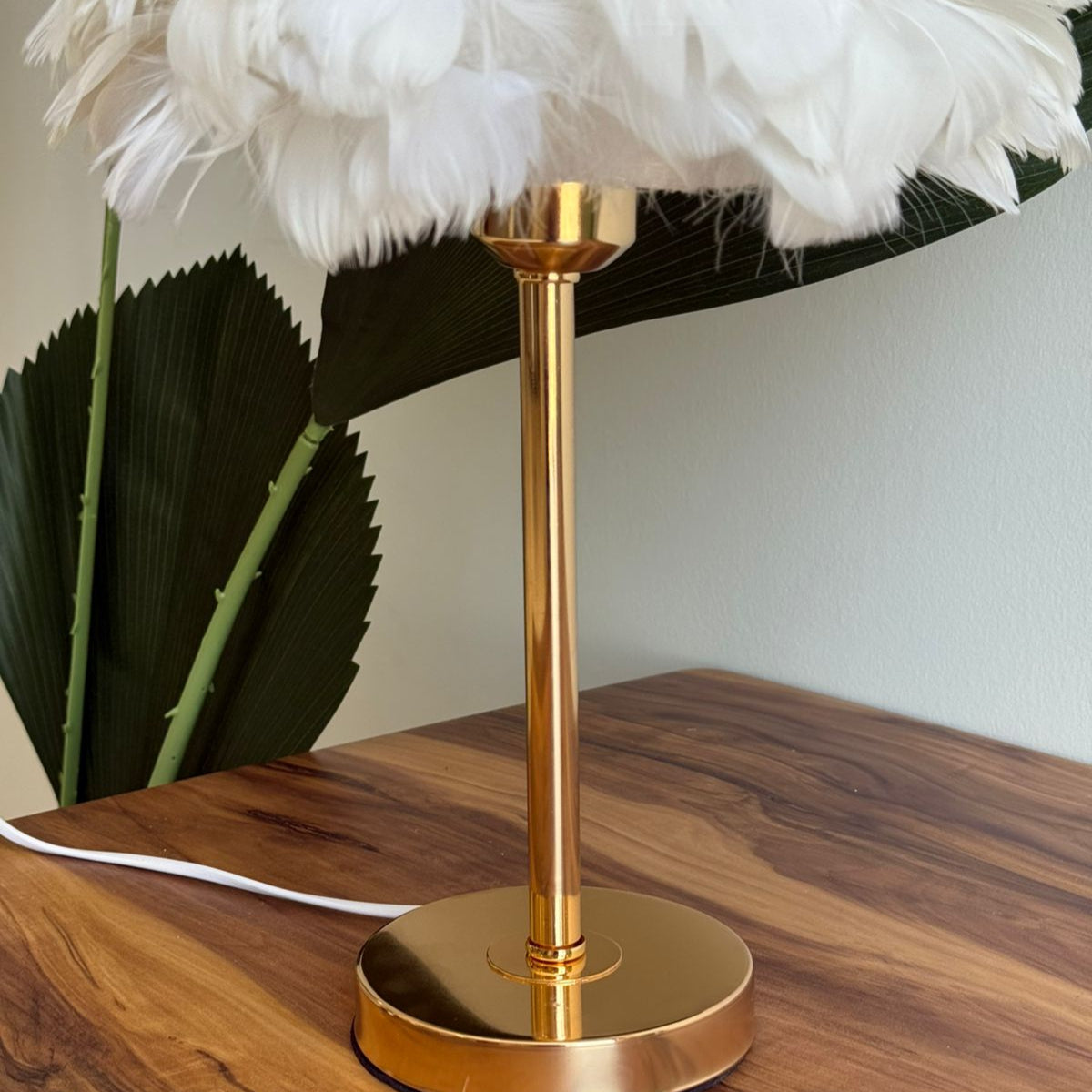 | الميزات الرئيسية: | غطاء ريش أبيض ناعم لتوهج ناعم كالسحاب حامل ذهبي معدني رفيع لإطلالة عصرية ساحرة قاعدة مدمجة - مثالية لطاولات السرير الجانبية، أو طاولات الزينة، أو أسطح المكاتب قطعة مميزة - توازن بين الملمس المرح والخامات الأنيقة |
