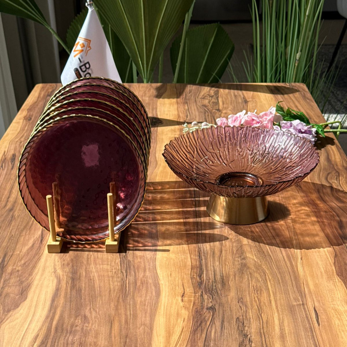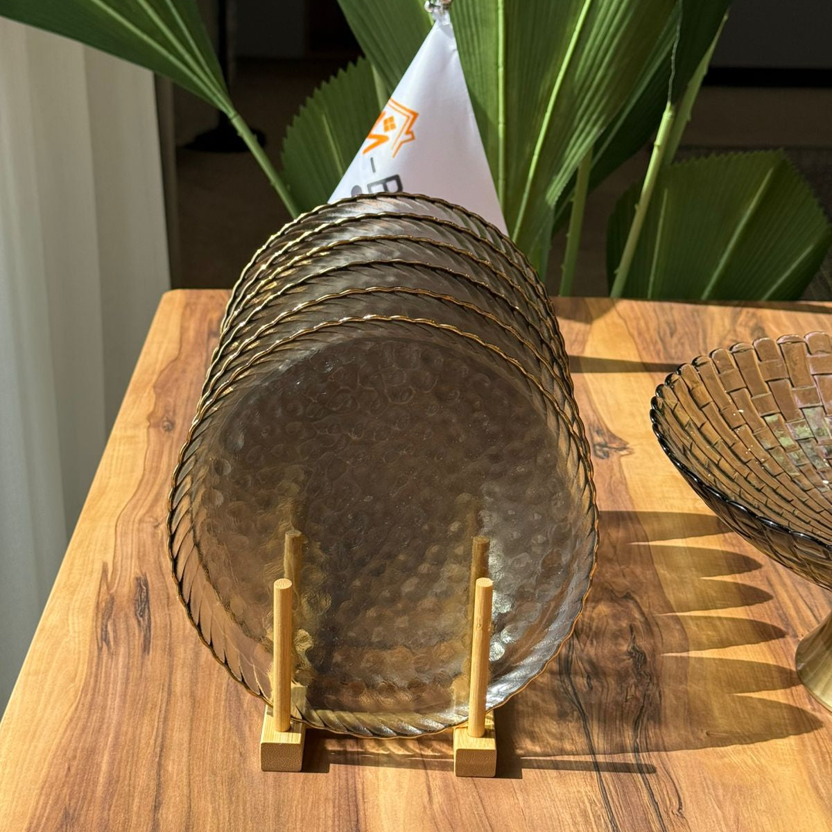 طقم أدوات مائدة زجاجي فاخر متموج - 6 قطع |