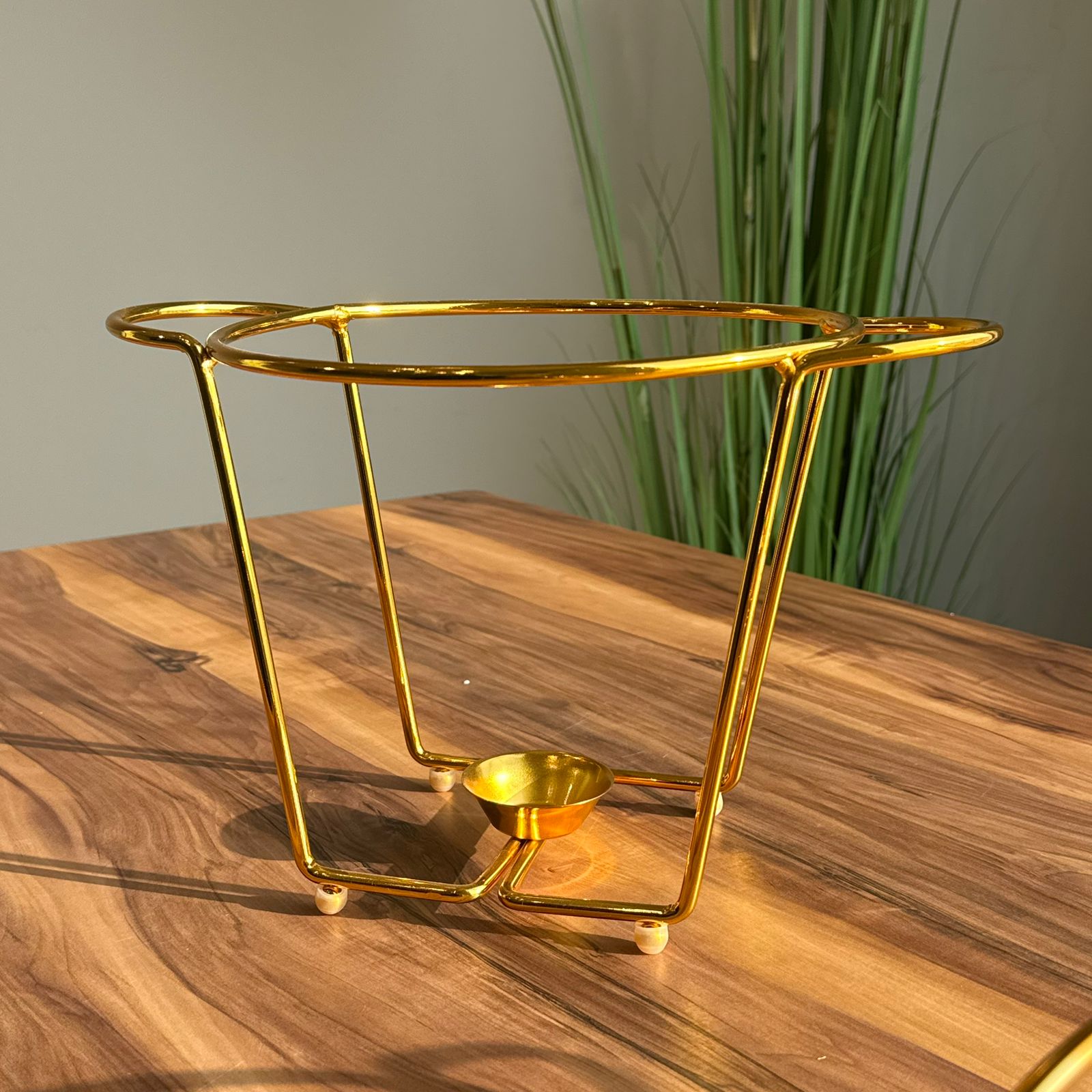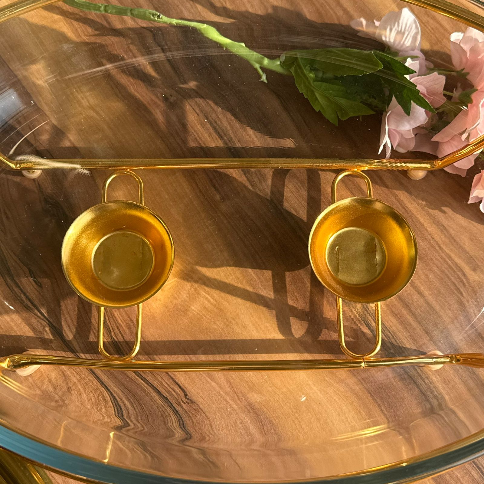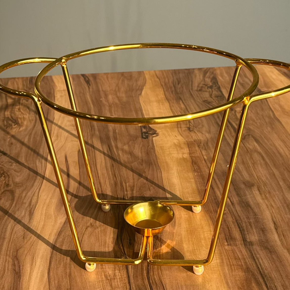 وعاء زجاجي شفاف بغطاء ذهبي معدني وحامل معدني مطلي بالذهب |