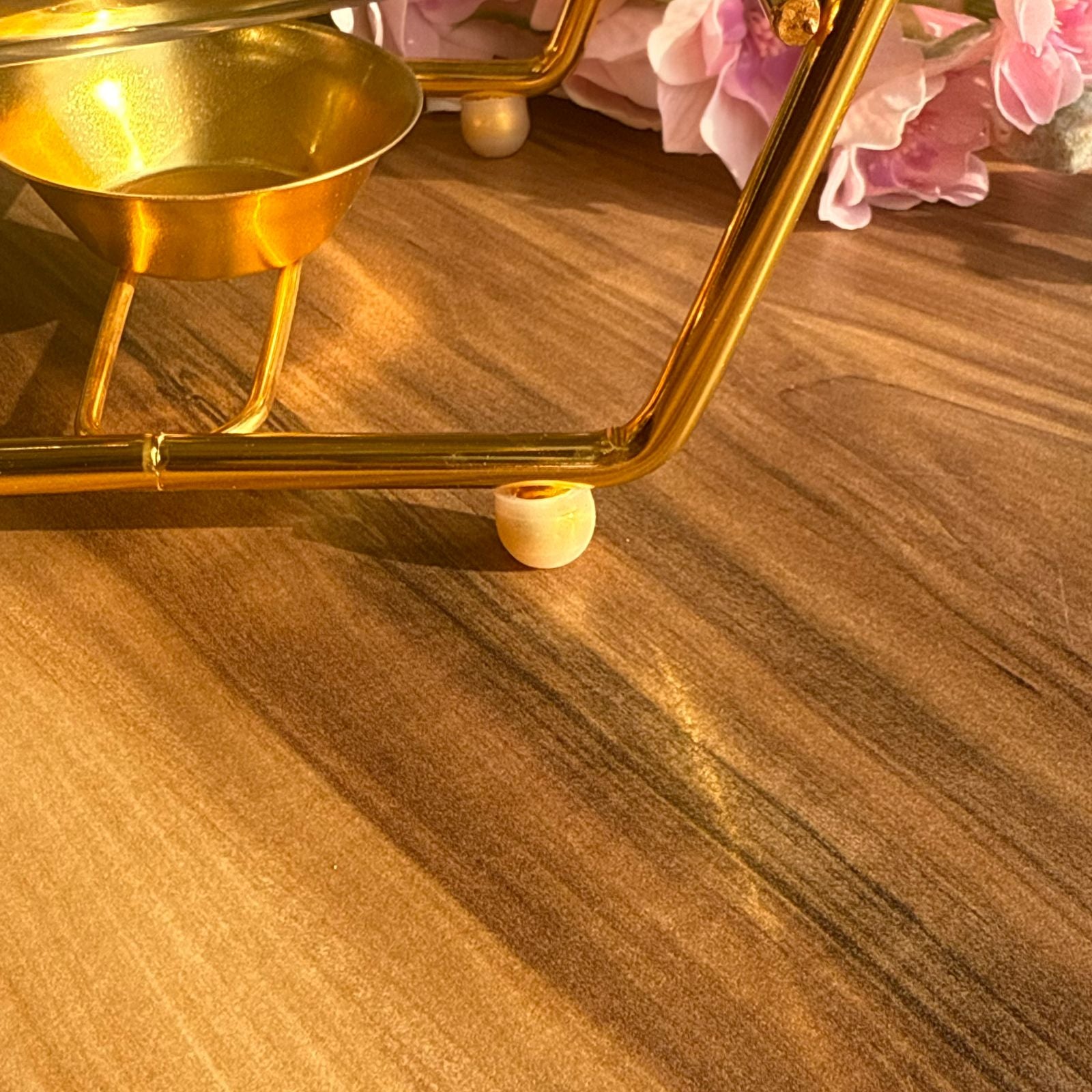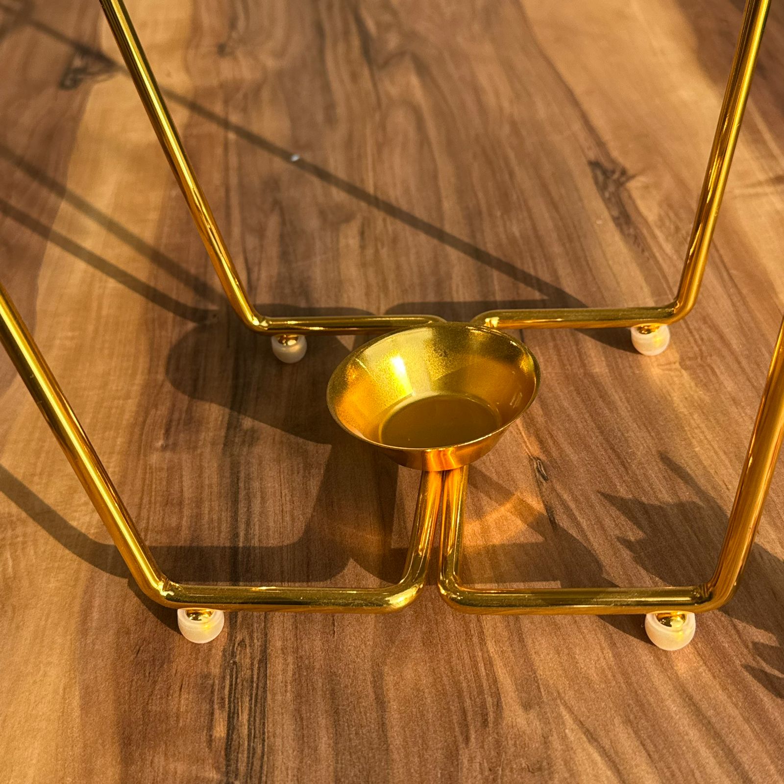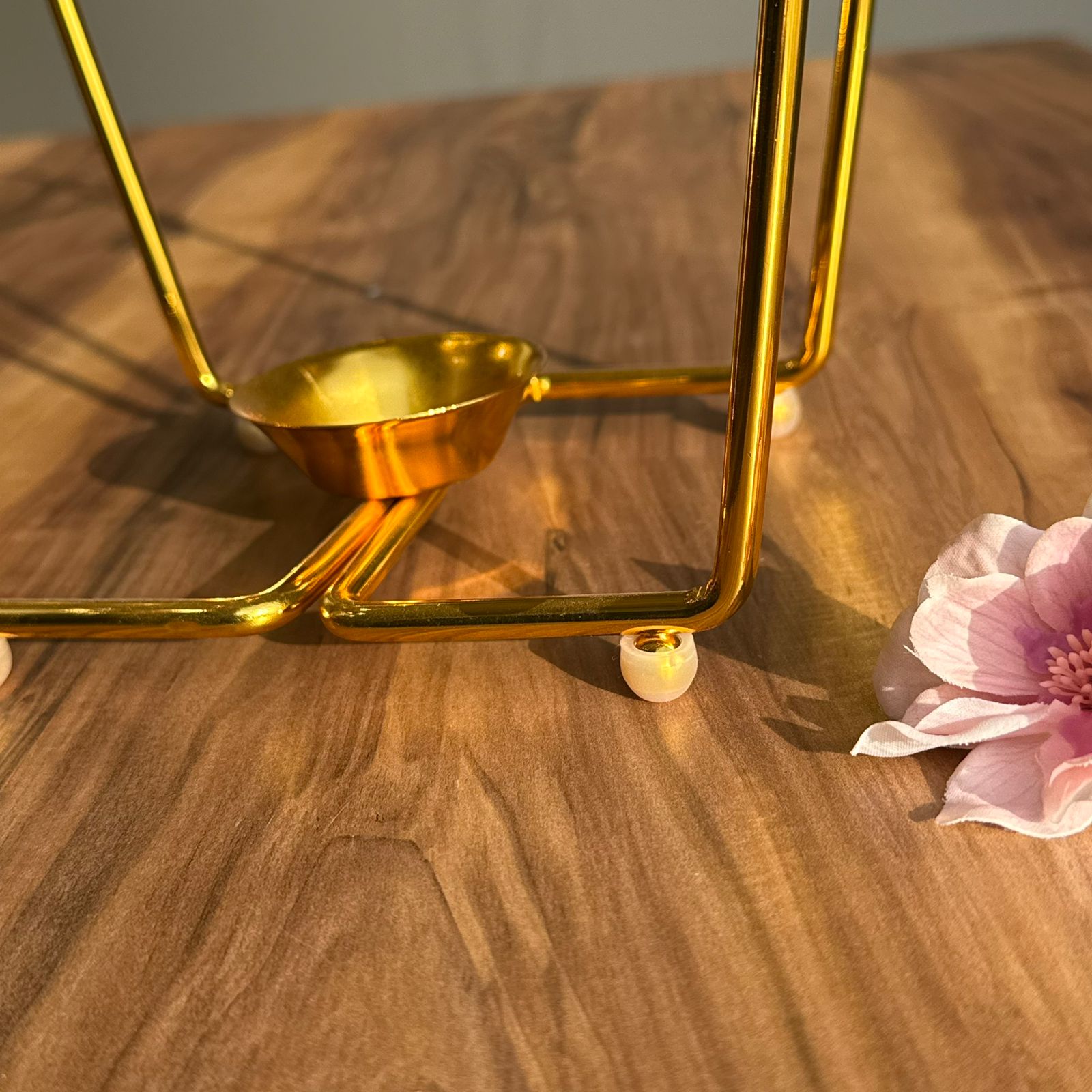 وعاء زجاجي شفاف بغطاء ذهبي معدني وحامل معدني مطلي بالذهب |