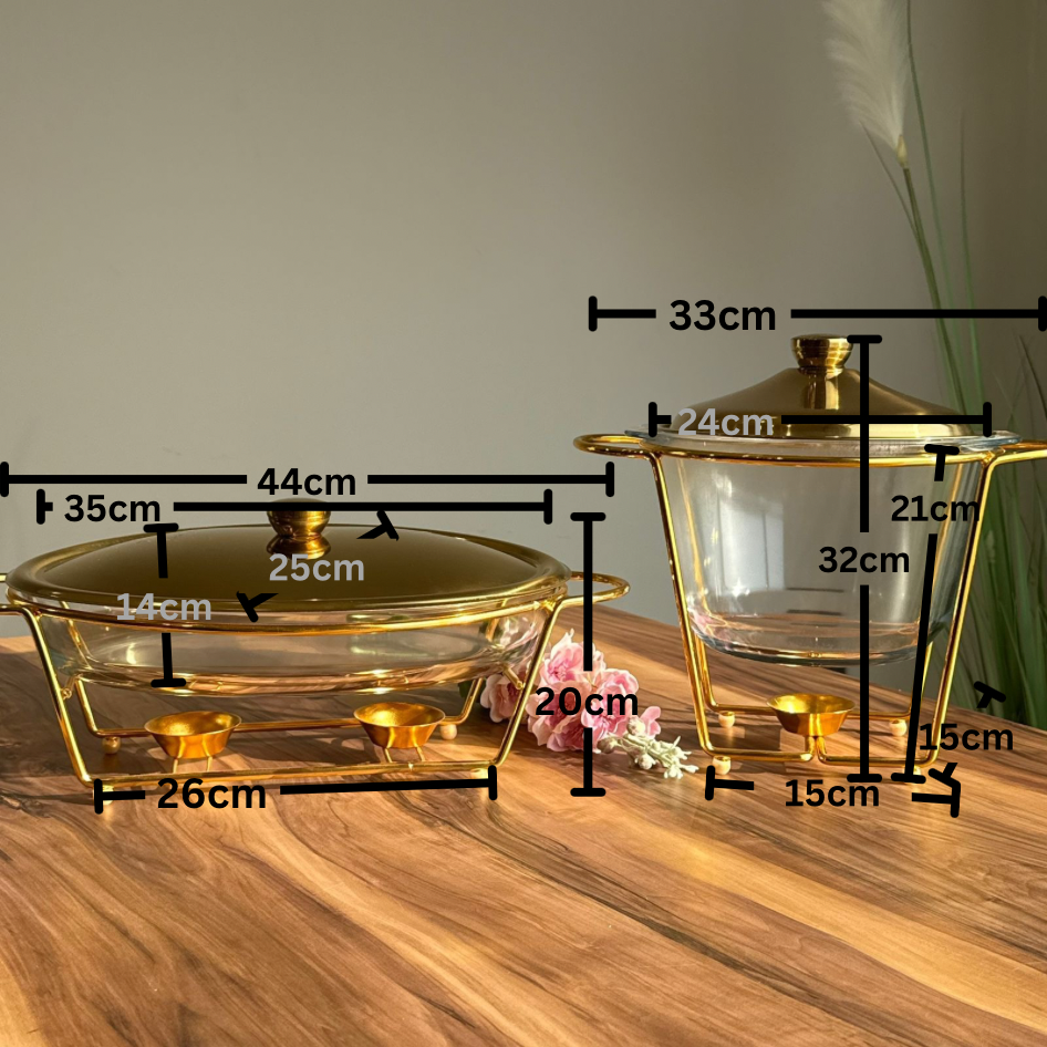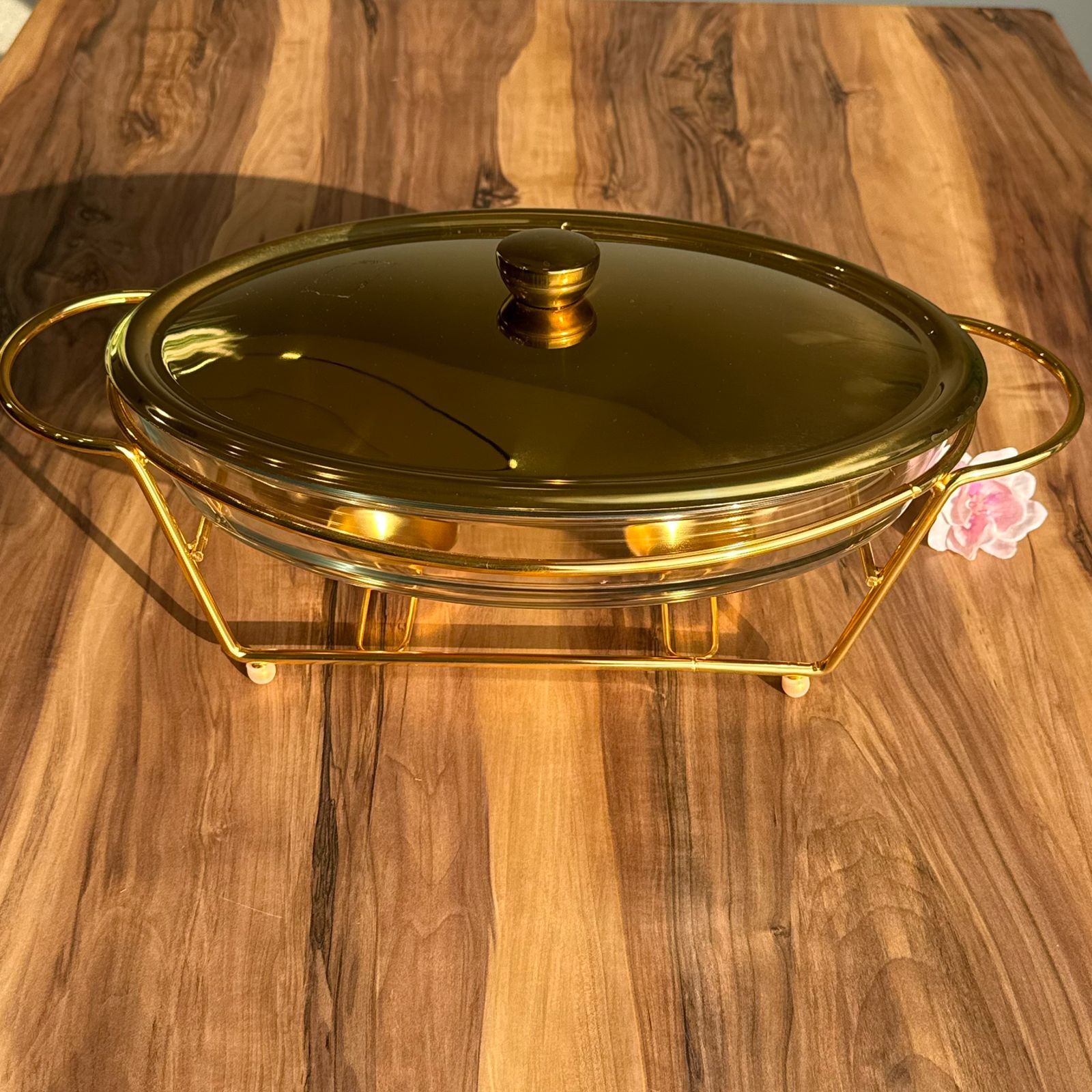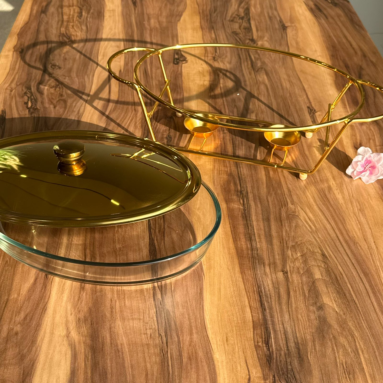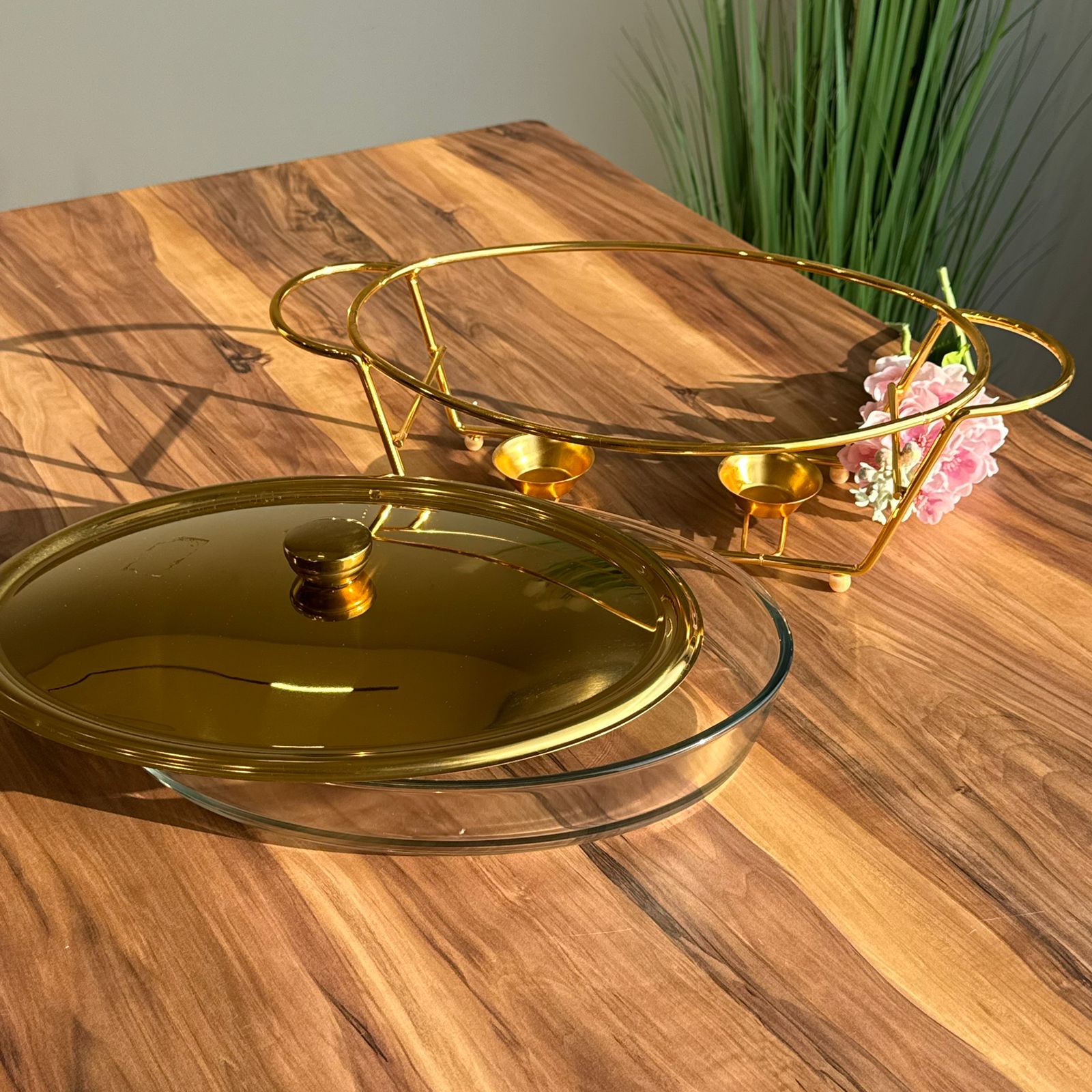 مجموعة أطباق تقديم الطعام الزجاجية الذهبية الفاخرة - تصاميم بيضاوية ودائرية |