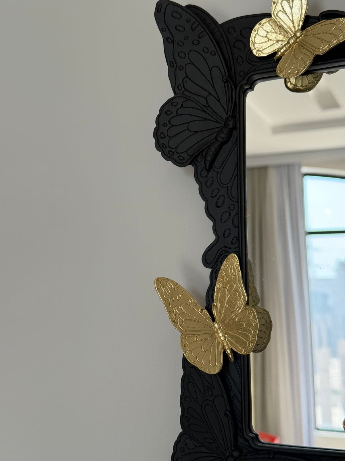 | اسم المنتج: | مرآة حائط معدنية بإطار فراشة وديكور |