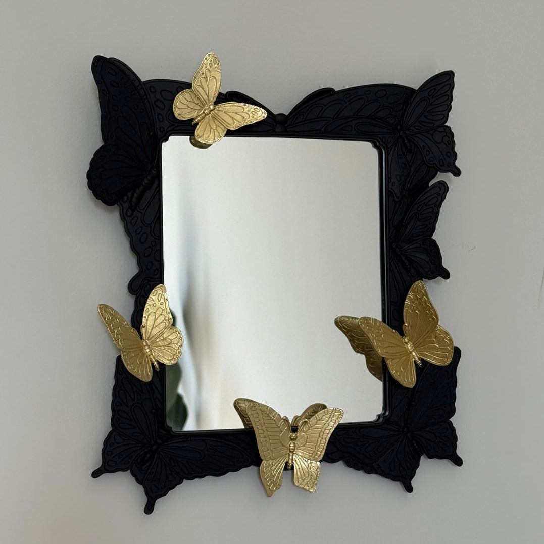 مرآة حائط معدنية بإطار فراشة وديكور