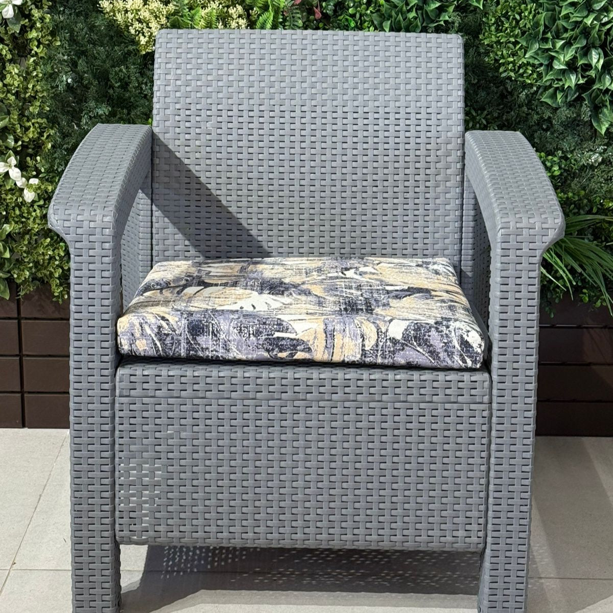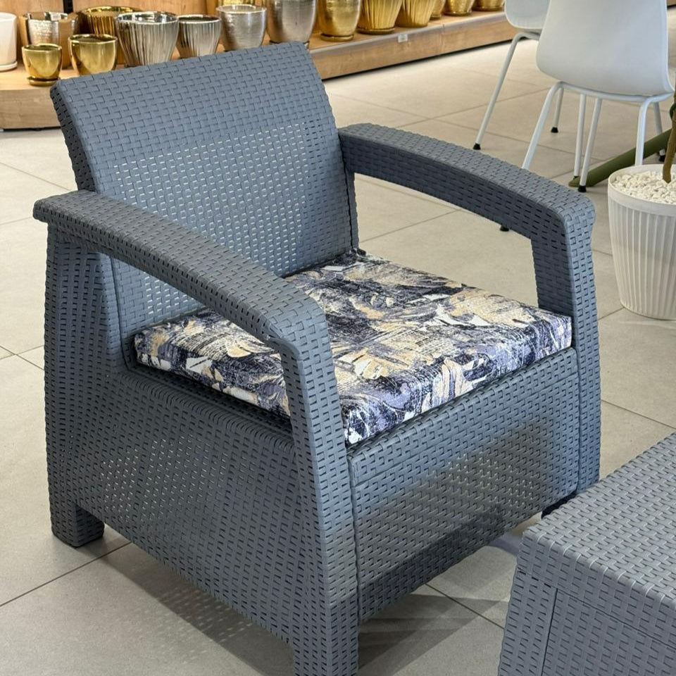 طقم حديقة جلسات خارجية - رمادي مع وسادة مزخرفة