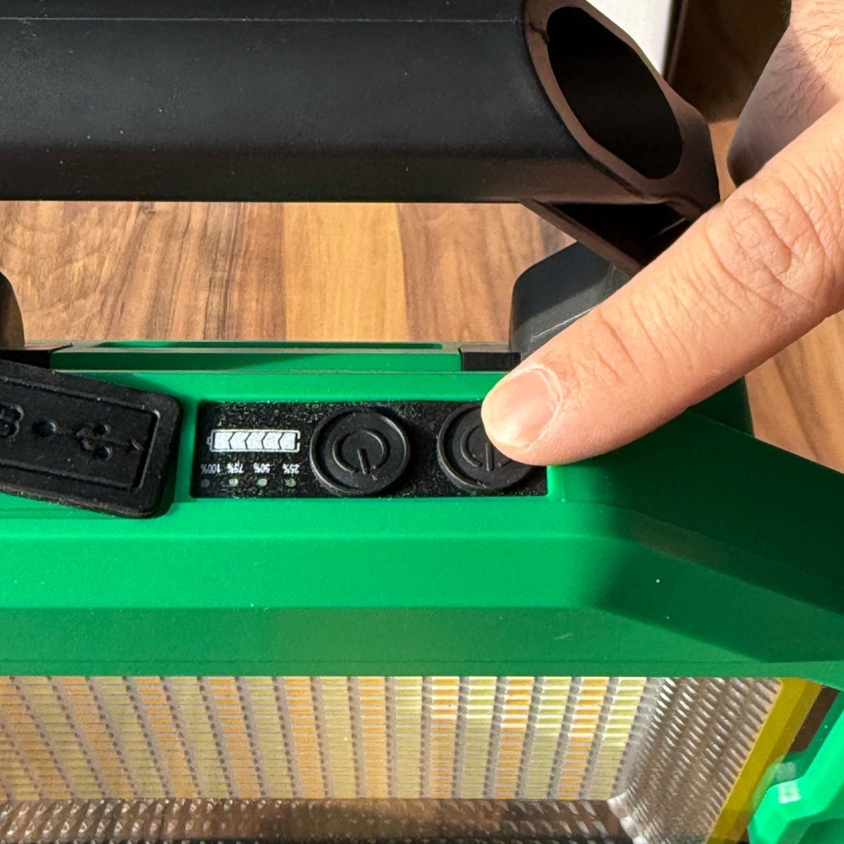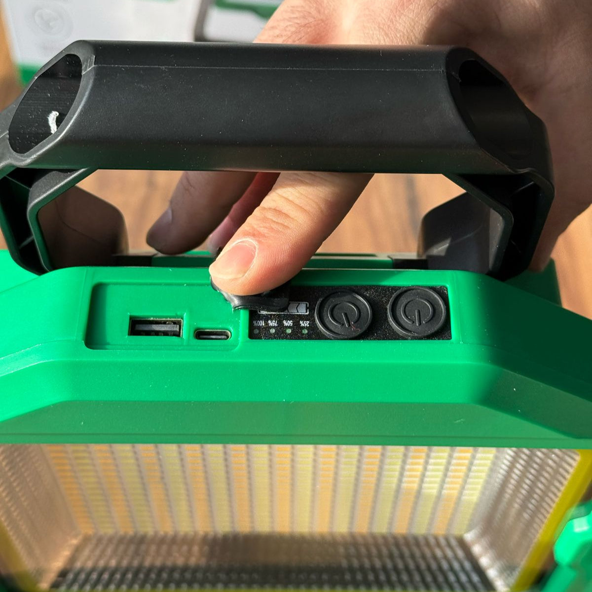 يحتوي المصباح على خمس بطاريات ليثيوم عالية الجودة بسعة إجمالية تبلغ 3300 مللي أمبير في الساعة ، مما يضمن وقت تشغيل طويل جدًا. تسمح البطارية للمستخدم بالاستفادة من الإضاءة لساعات طويلة بعد أن يتم شحنها بالكامل ، مما يجعلها مثالية للاستخدام في الأماكن التي لا توجد فيها مصادر طاقة كهربائية ثابتة
