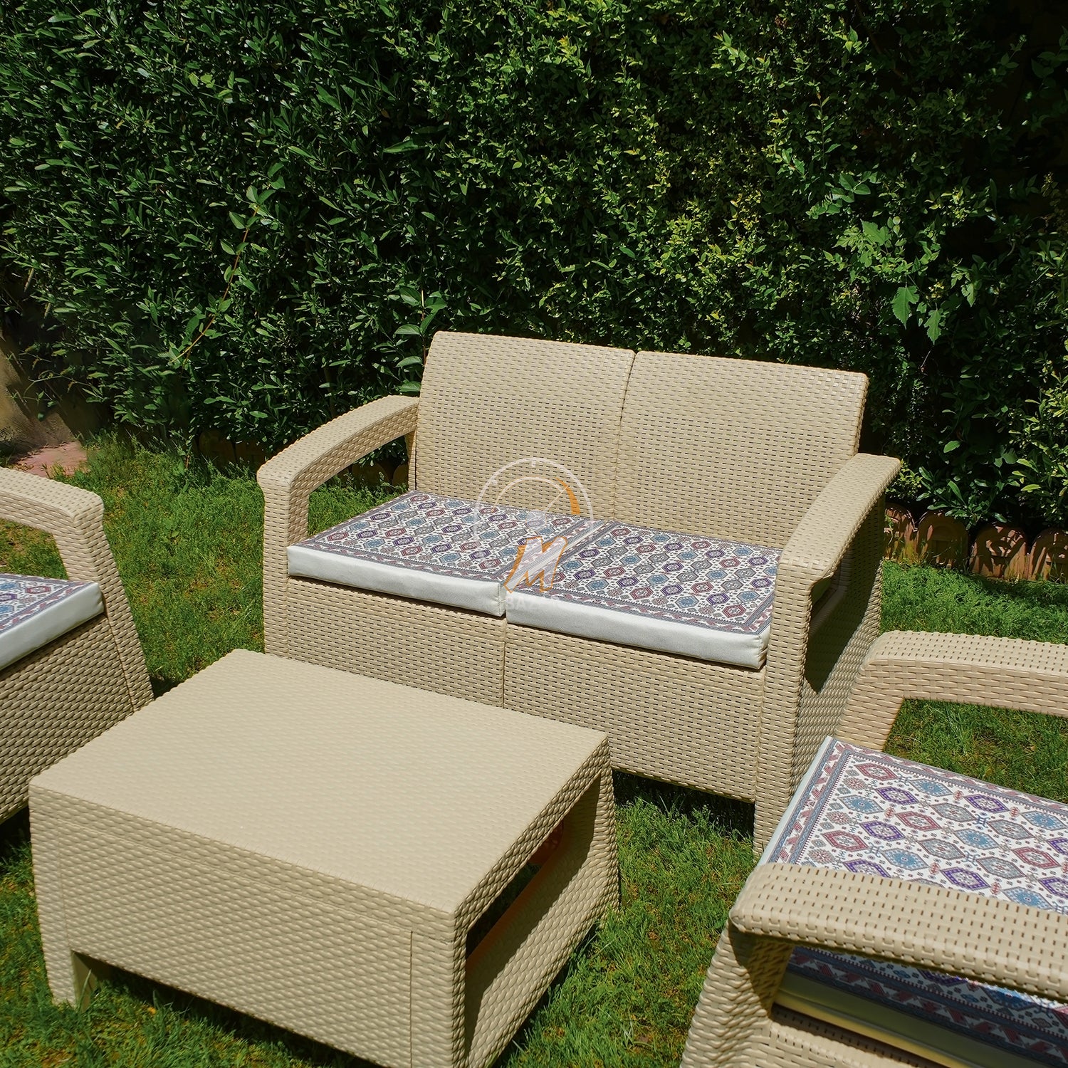 - سێتێک کە لە چوار پارچە پێکهاتووە لەوانە، دوو کورسی، یەک شوێنی خۆشەویستی و مێزی قاوە.