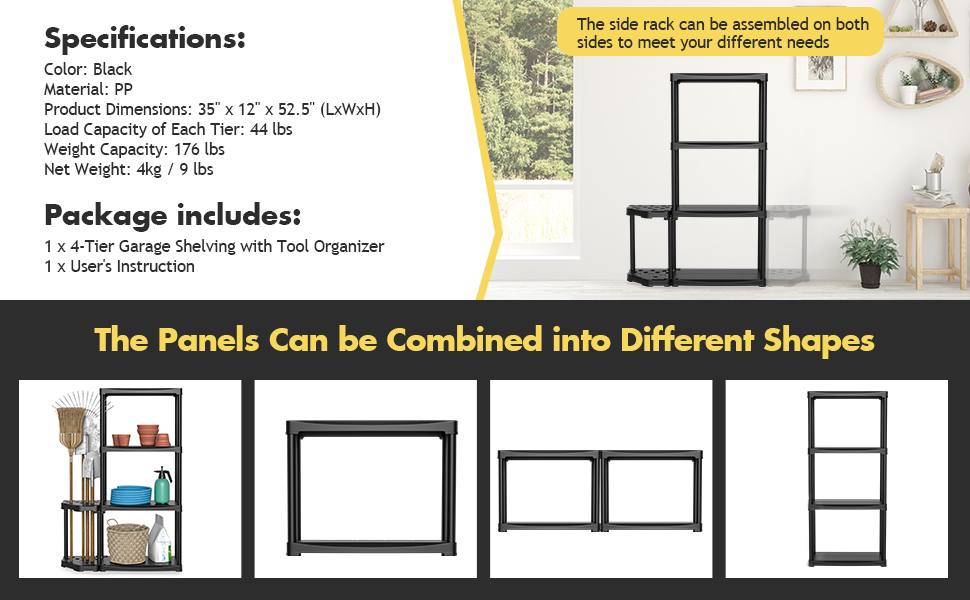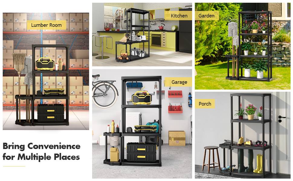 The Rack with 4 shelves is suitable for use in any environment in your home, such as bedroom, pantry, laundry, garage, office, kitchen, living room and bathroom.