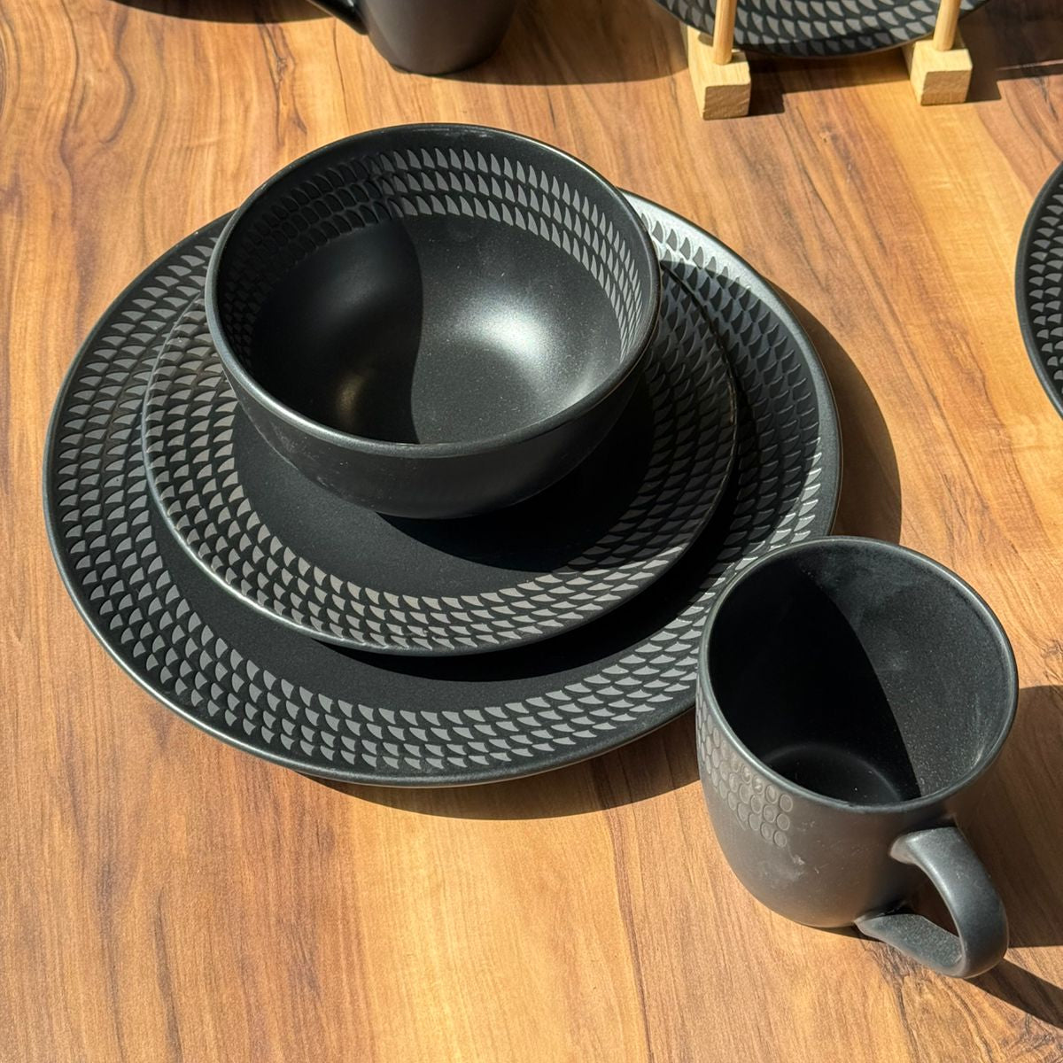 16-PCS Obsidian Luxe- Matte Black Dinnerware Set |