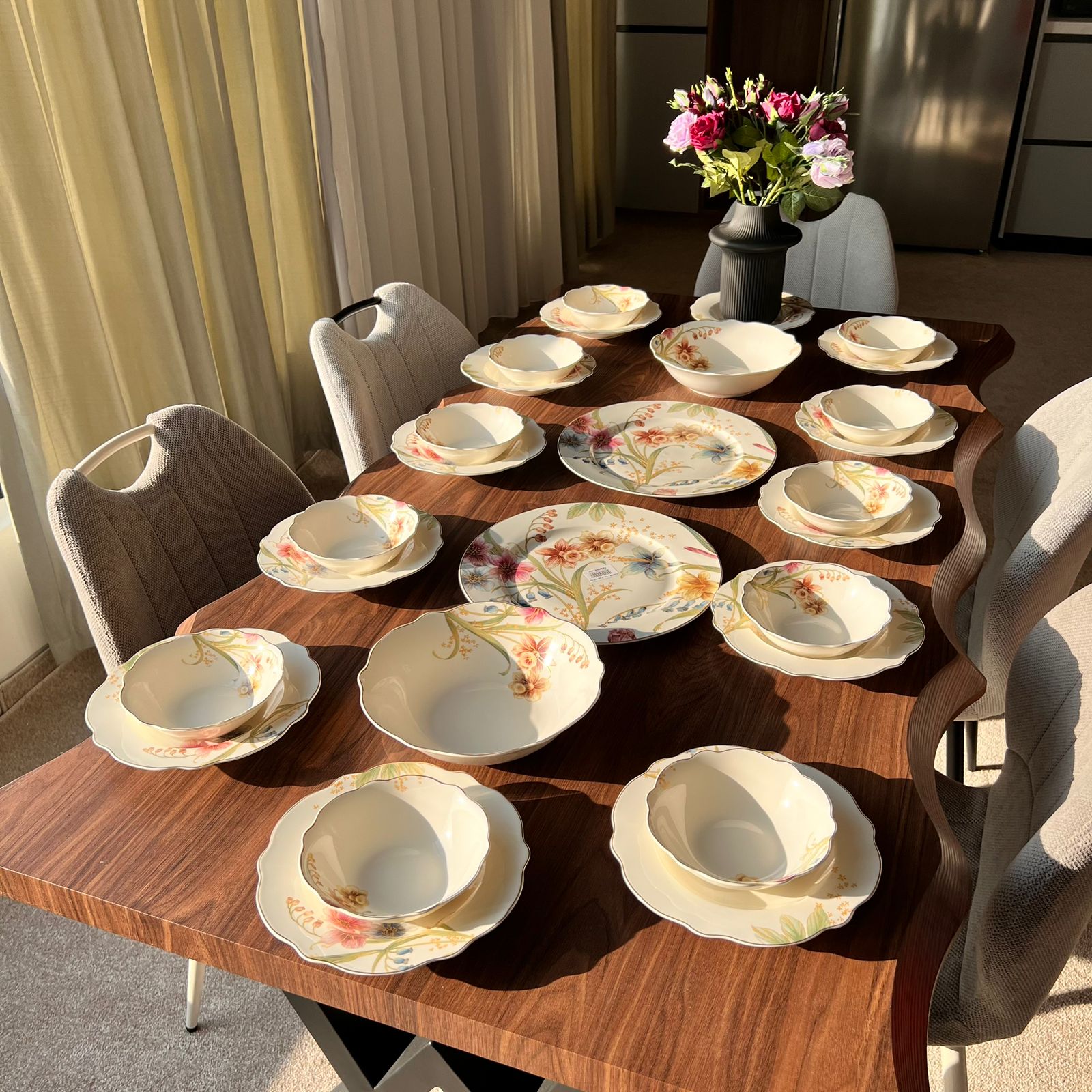 28PCS Porcelain Floral Wavy Dining Tableware Set |