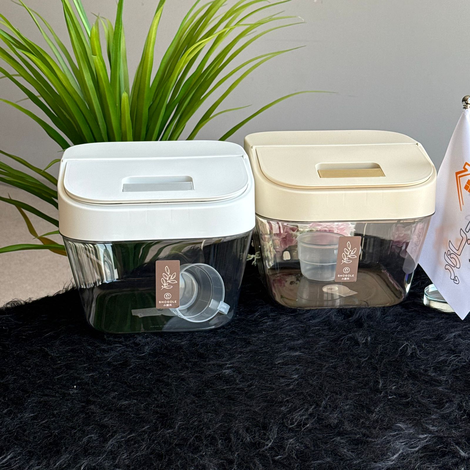 Transparent body with White, and Beige lid |