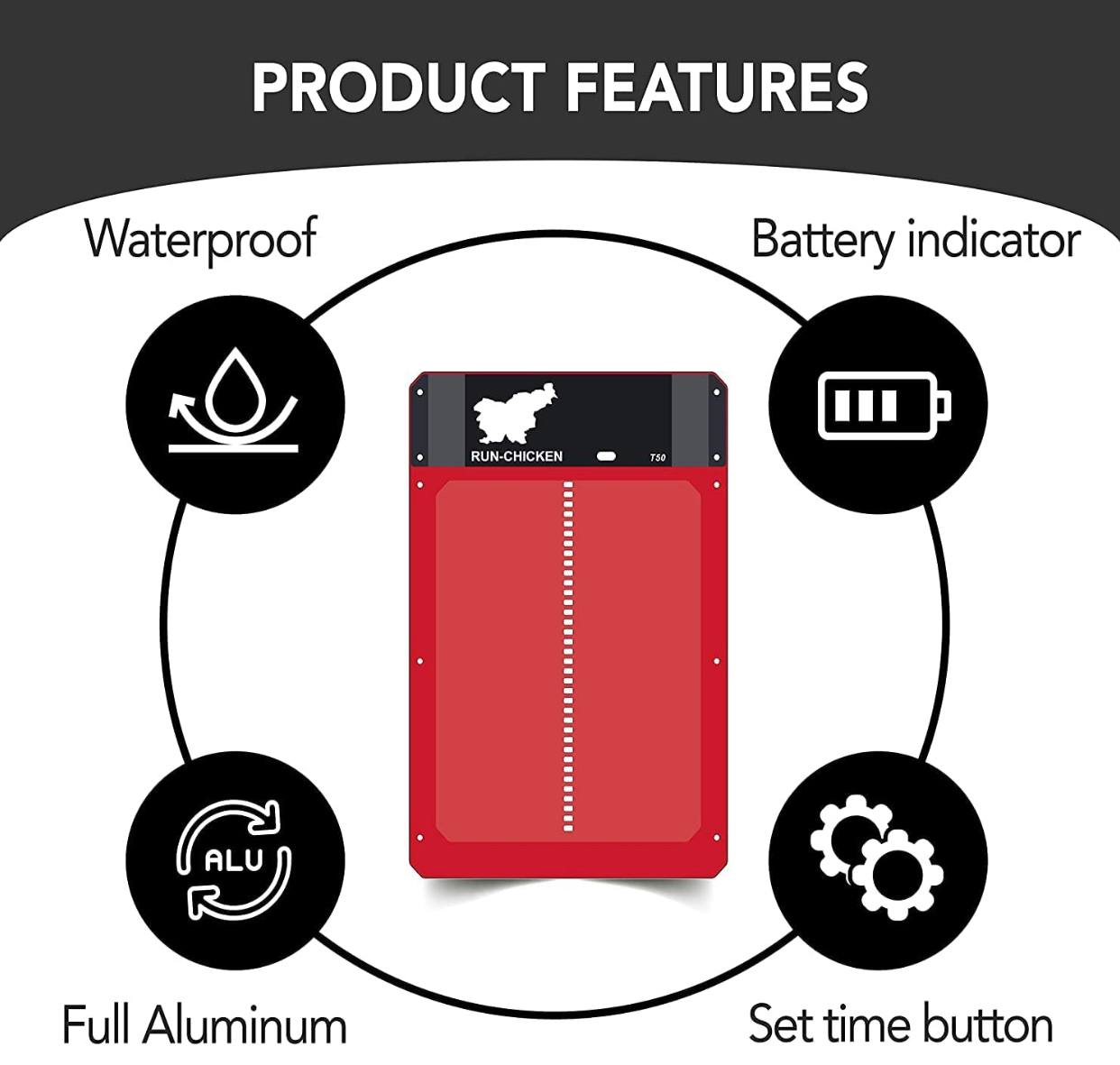 Works in Extreme Conditions & Waterproof: run chicken automatic door will work in snow, rain, and dust from -15°F to 140°F (-26°C to 60°C).