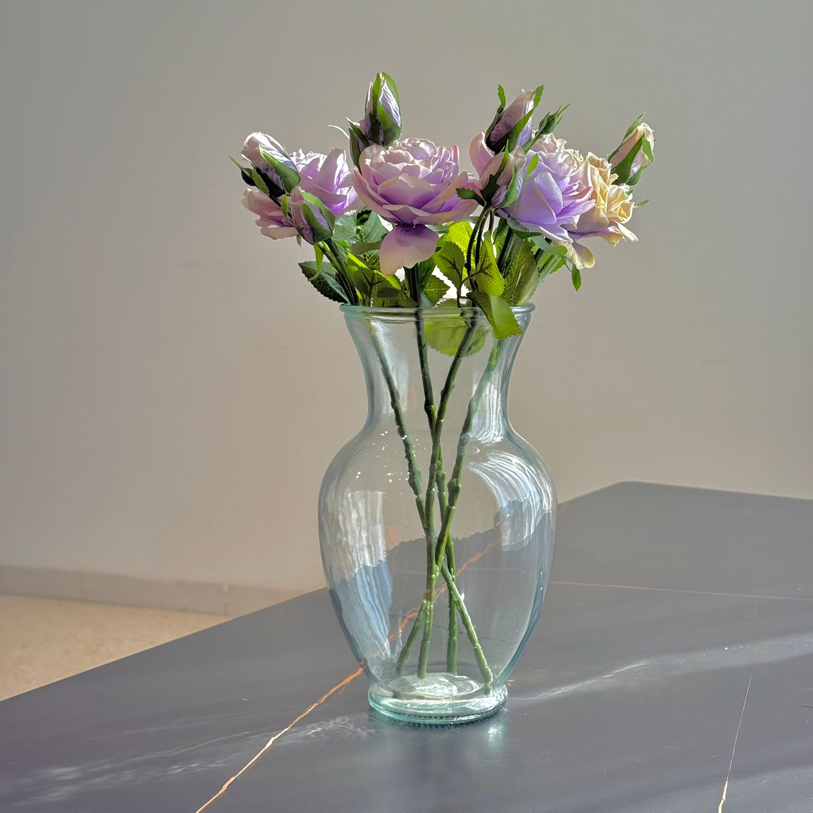 - Durable Material – Made From Sturdy Glass For Long-Lasting Use. - Stable Base – Flat And Wide Base Prevents Tipping And Ensures Stability On Surfaces, And Protect Surfaces - Multi-Purpose Use – Can Hold Flowers, Dried Arrangements, Or Stand Alone As Decorative Art. - Elegant Shape – Designed to Complement Floral Arrangements And Home Decor Styles. -Versatile Placement – Ideal For Living Rooms, Bedrooms, Entryways, Offices, Or Event Decor. - Lightweight Design – Easy to move and reposition as needed. - Wide Opening – Accommodates various bouquet sizes, branches, or ornamental objects. - Statement Piece – Can Act As A Focal Point In A Room Or Setting, Eye-Catching Design That Works As A Standalone Piece Or With Faux Florals - Handcrafted & Unique Detailing – Adds a touch of individuality and craftsmanship. - Gifting - Ideal For Home Decor Or Gifting, Could Be A Perfect Gift For Your Loved Ones