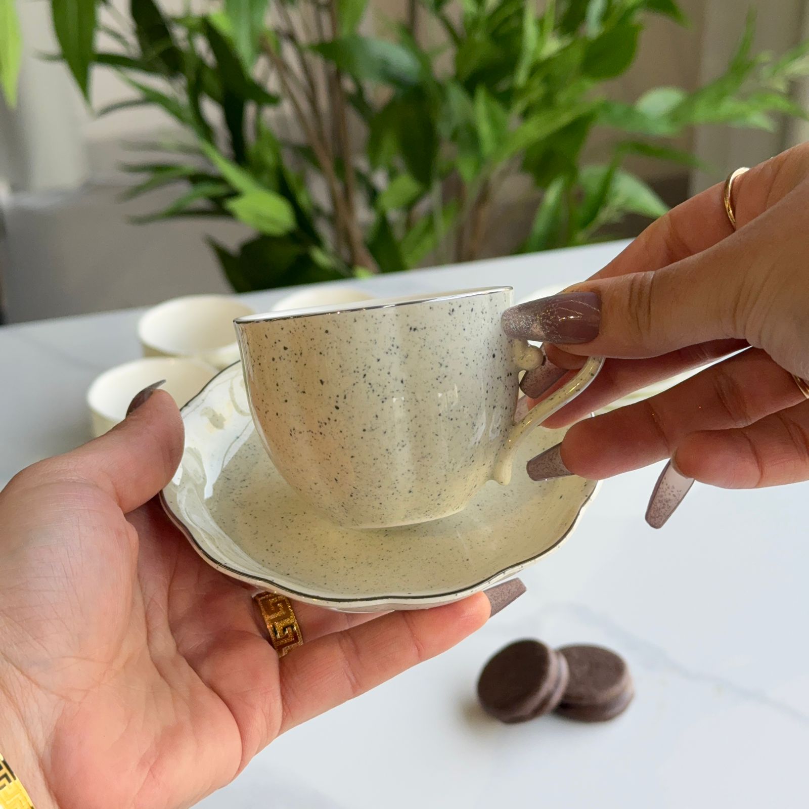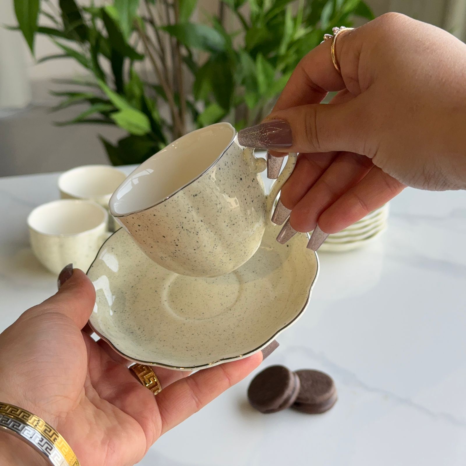 6 cups + 6 matching saucers |