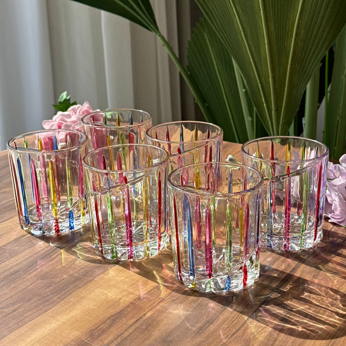 Colorful Striped Glass Tumbler Set - 6 Pieces |