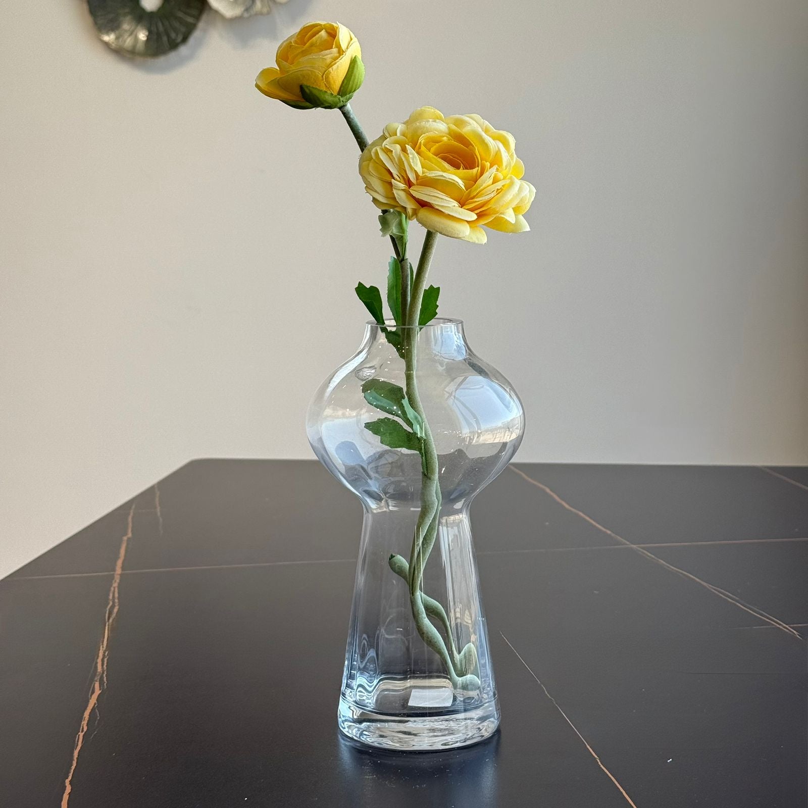 - Durable Material – Made From Sturdy Glass For Long-Lasting Use. - Stable Base – Flat And Wide Base Prevents Tipping And Ensures Stability On Surfaces, And Protect Surfaces - Multi-Purpose Use – Can Hold Flowers, Dried Arrangements, Or Stand Alone As Decorative Art. - Elegant Shape – Designed to Complement Floral Arrangements And Home Decor Styles. -Versatile Placement – Ideal For Living Rooms, Bedrooms, Entryways, Offices, Or Event Decor. - Lightweight Design – Easy to move and reposition as needed. - Wide Opening – Accommodates various bouquet sizes, branches, or ornamental objects. - Statement Piece – Can Act As A Focal Point In A Room Or Setting, Eye-Catching Design That Works As A Standalone Piece Or With Faux Florals - Handcrafted & Unique Detailing – Adds a touch of individuality and craftsmanship. - Gifting - Ideal For Home Decor Or Gifting, Could Be A Perfect Gift For Your Loved Ones