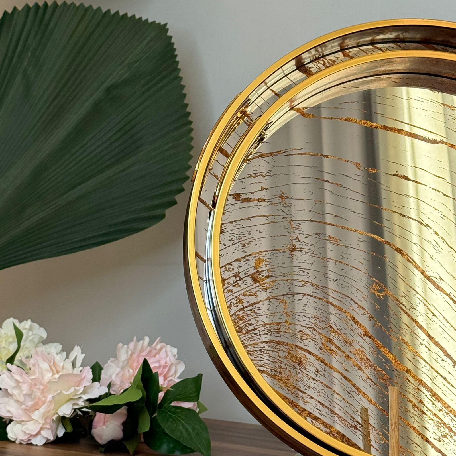 Golden Wave Round Mirror Serving & Decorative Tray |