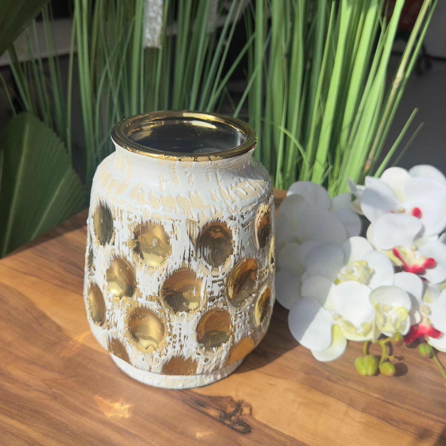 | Key Features: | -Bold 3D Gold Dot Texture -Glossy Detailing On Rim And Circles -Artistic Design, Eye-Catching, Suitable For Modern, Minimalist, Or Floral-Themed Interior -Ideal For Home Decor Or Gifting |