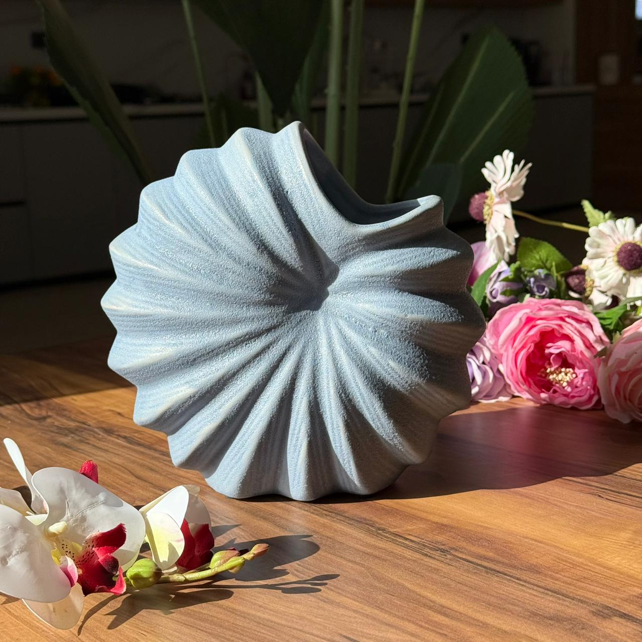 | Key Features: | -Unique Fan Shell-Inspired Shape -Matte Ceramic Texture Adds A modern Handmade Touch -A Statement Piece Even Without Flowers |