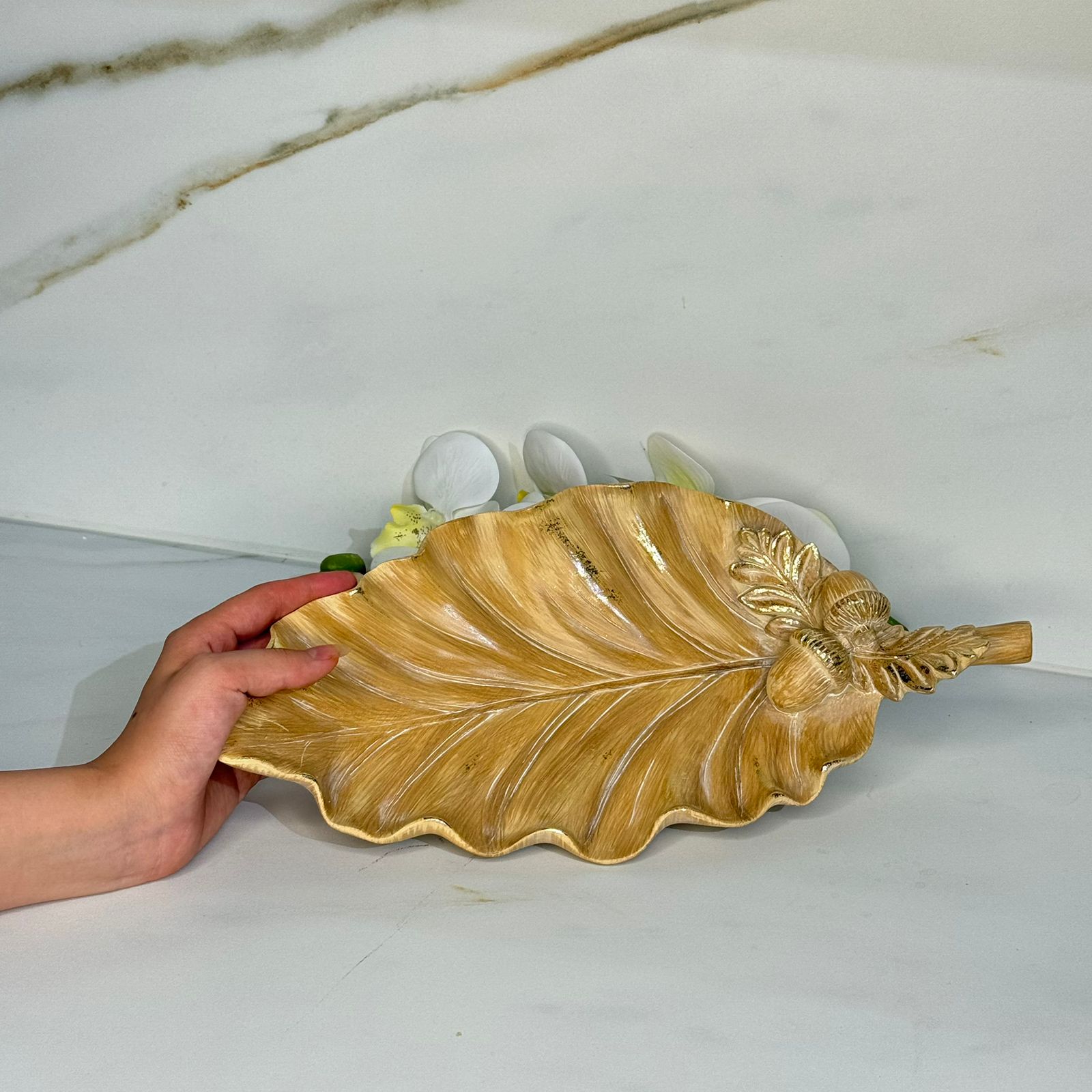 - Shaped Like A Curled Leaf For A Natural Aesthetic - Decorated With Acorns And Pinecones For Seasonal Or Forest Vibes - Textured Surface With Hand-Painted Effects Mimicking Real Wood - Detailed Veining On The Leaves For A Realistic, Textured Look - Compact And Elegant Size Ideal For Tabletop Displays - Lightweight Yet Sturdy Ceramic Construction - Wavy Edges Add Dimension And Organic Feel