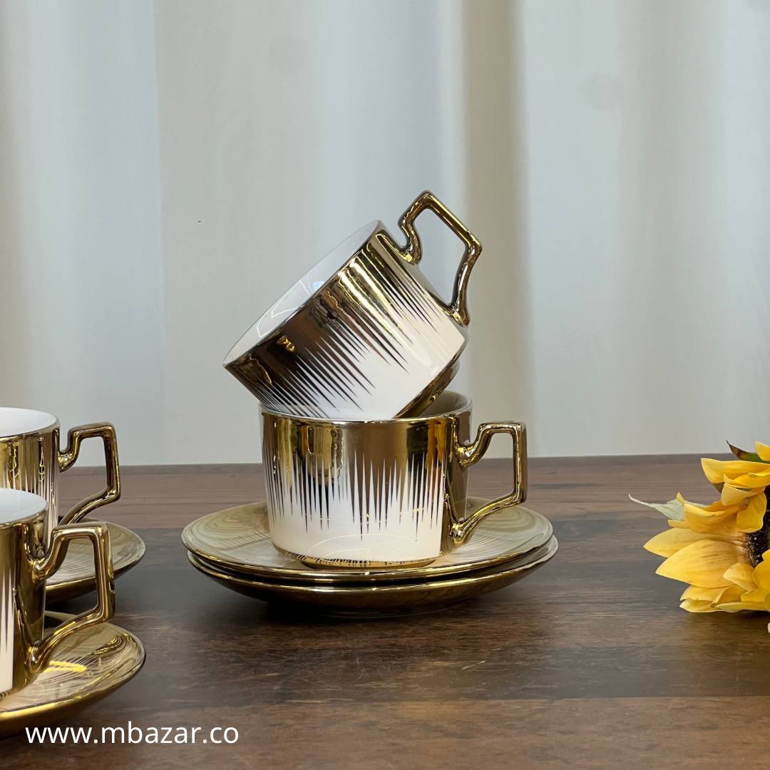 Set of 6 Gold Edge Ceramic Coffee Cup Set