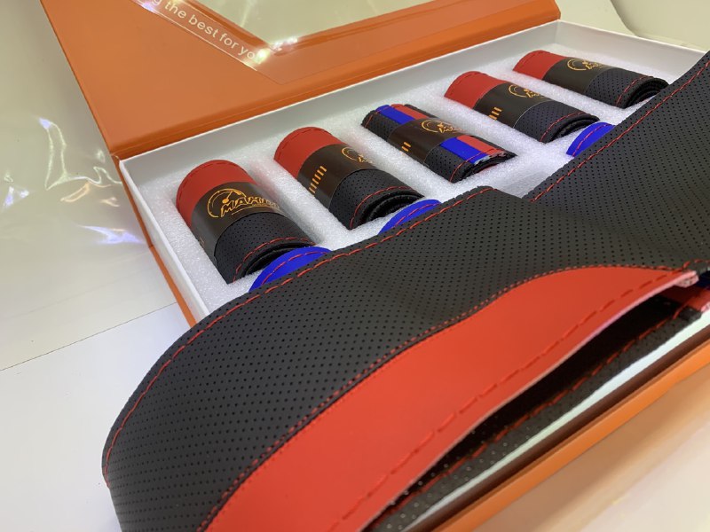 - Stitched steering wheel cover consists of two types of leather that can fit any steering wheel of any car brand.