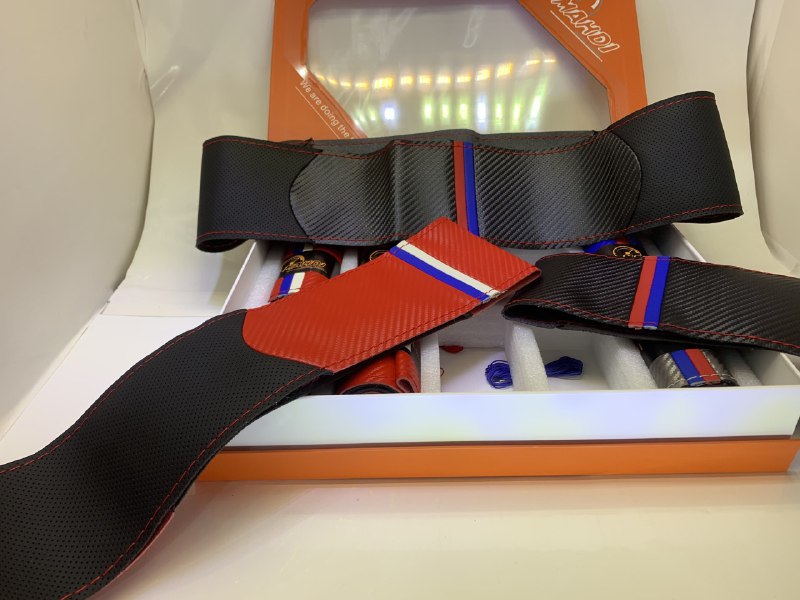 - Stitched steering wheel cover consists of two types of leather that can fit any steering wheel of any car brand.