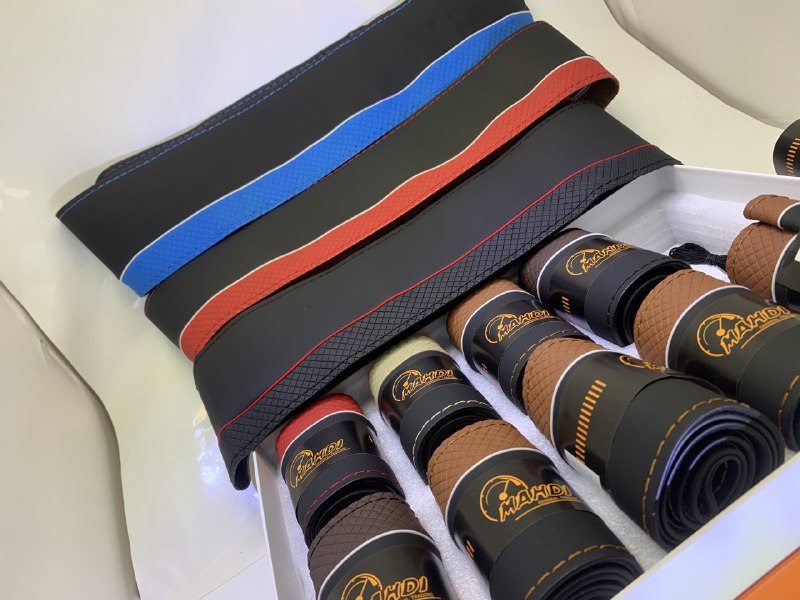- Stitched steering wheel cover consists of two types of leather that can fit any steering wheel of any car brand.