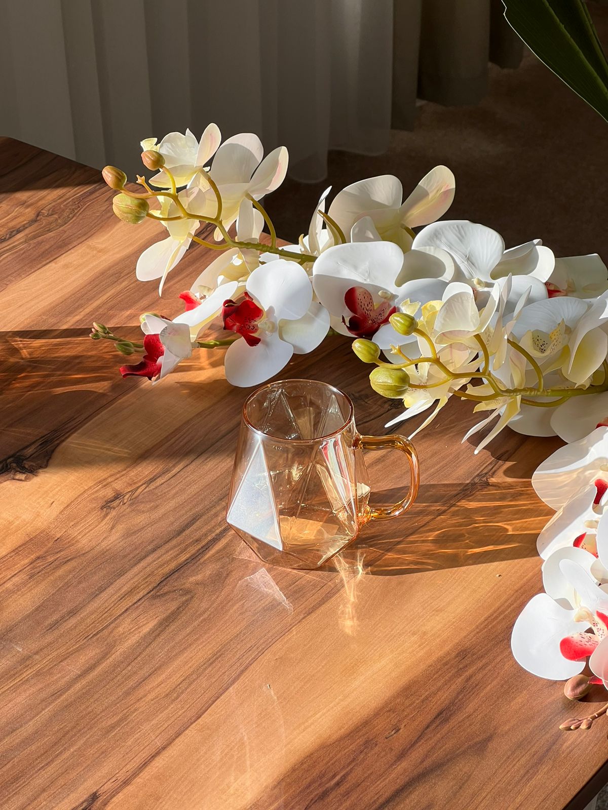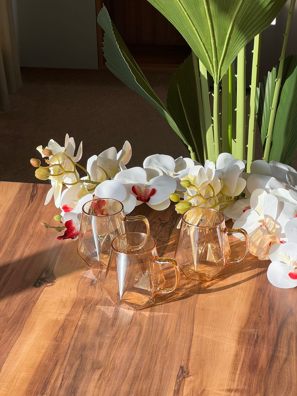 The glass is lightweight and a handle, Which makes it comfortable to hold and drink from. The Diamond Pattern gives it beautiful and attractive look.