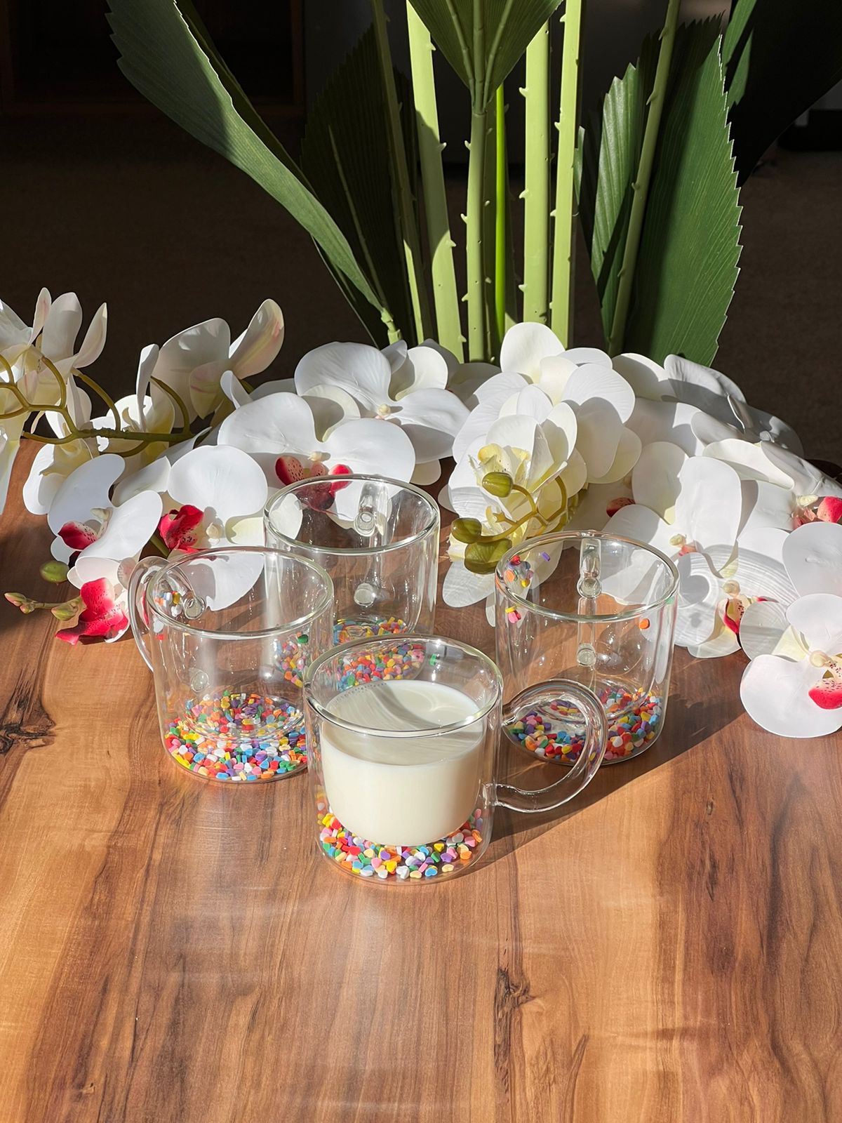 Transparent Double Wall Glitter Glass Mug made from premium-quality glass, ensuring durability and a superior drinking experience.