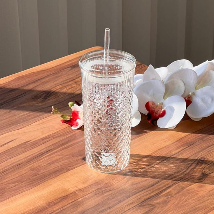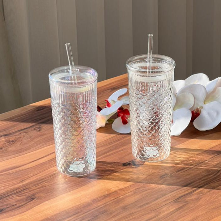 Transparent Mermaid Pattern Glass with Lid and Strew made from premium-quality glass, ensuring durability and a superior drinking experience.