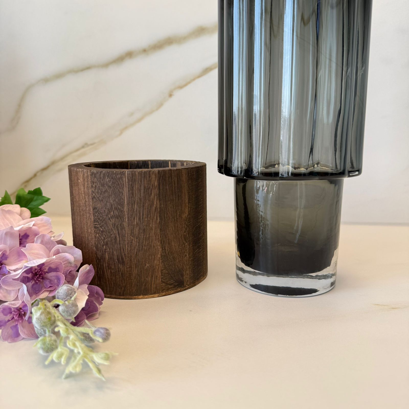 Wave-Edge & Wooden Base - Smoky Glass Vase Collection